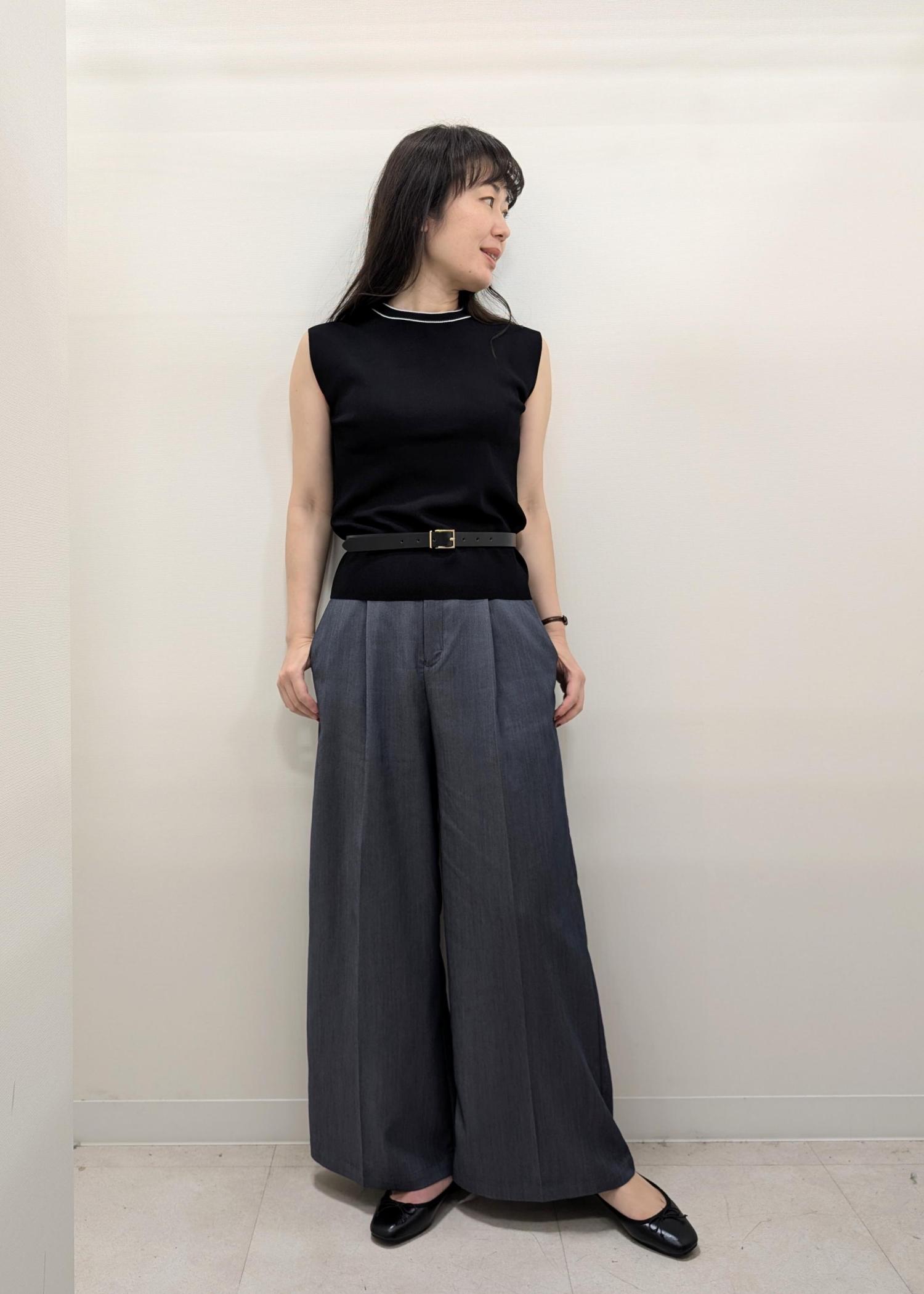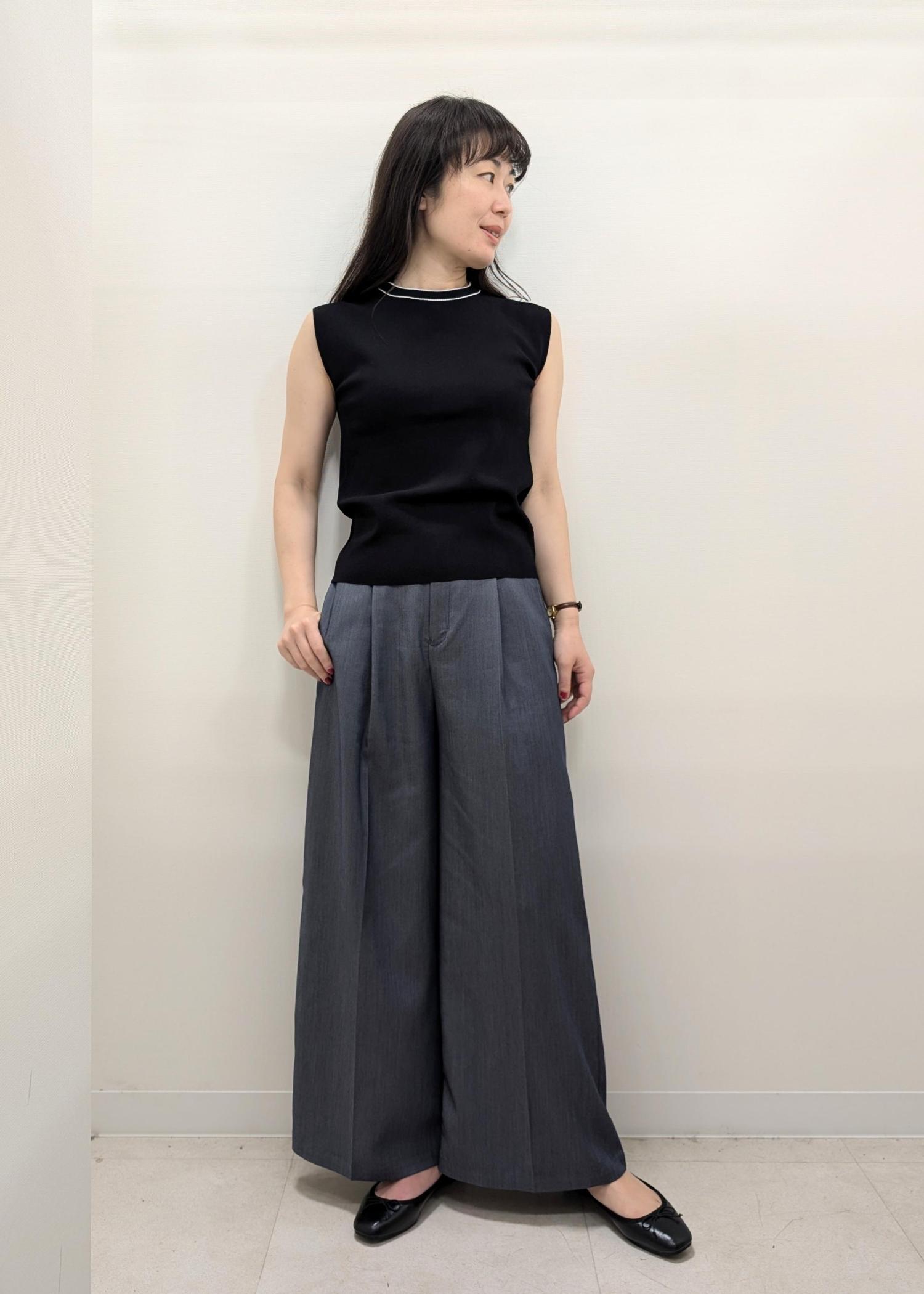やや腕にかかるノースリーブなので、自然と二の腕面積を減らしてくれるニットです!