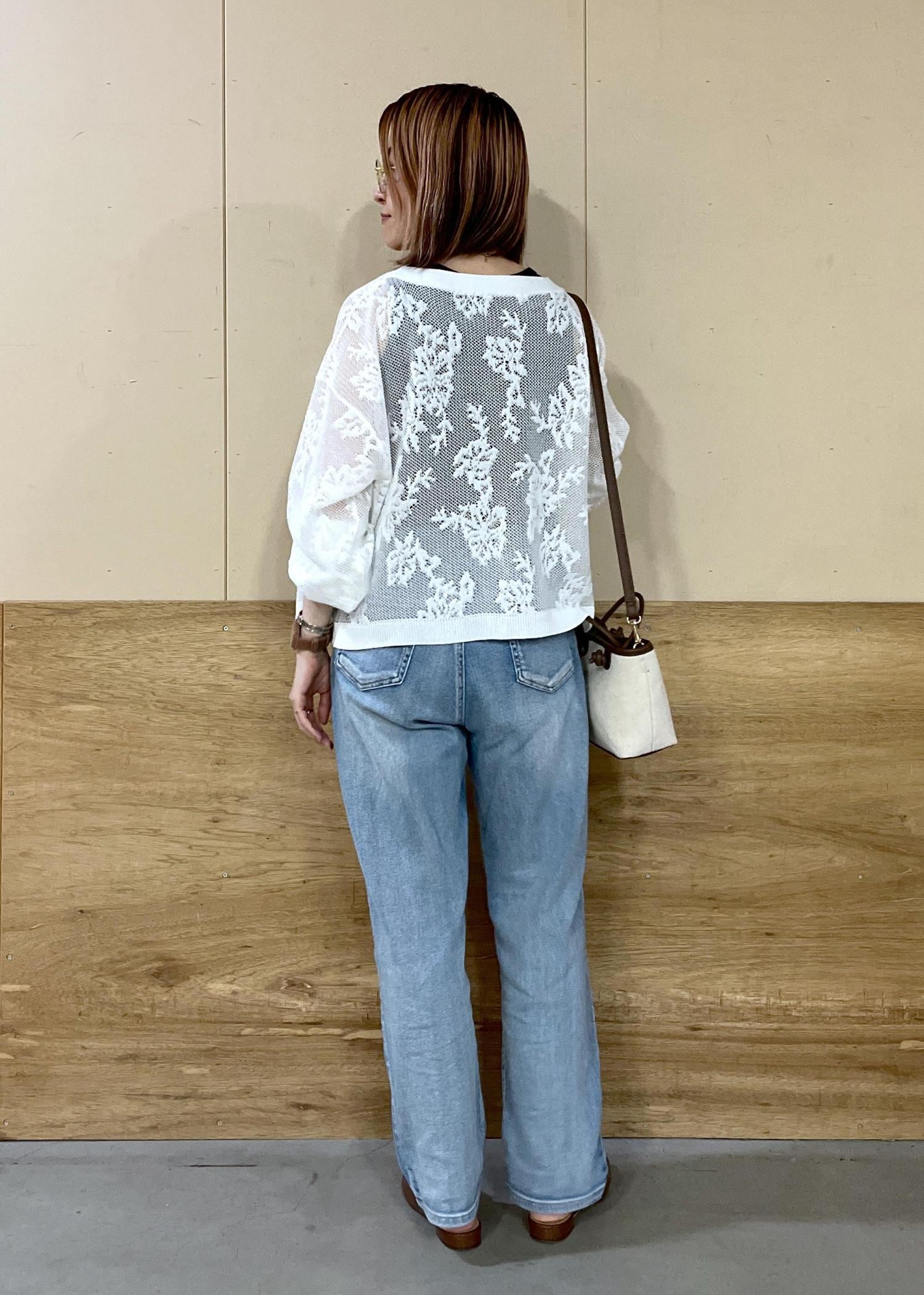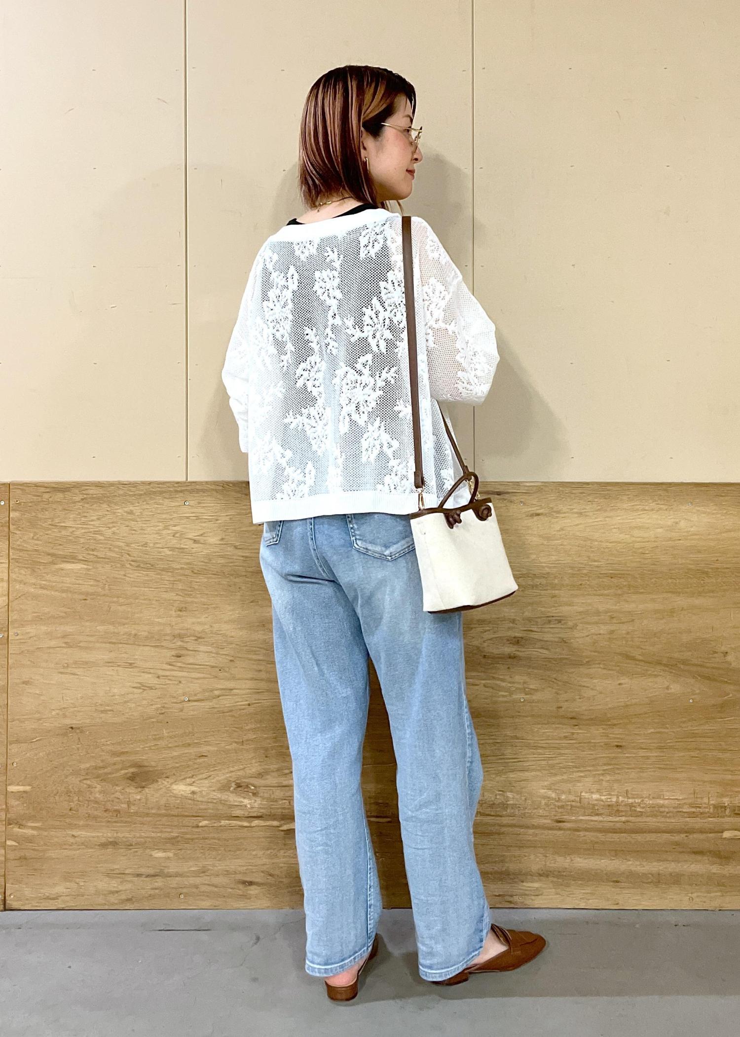 涼しげなレースカーディガンを使った、カジュアルコーデです。