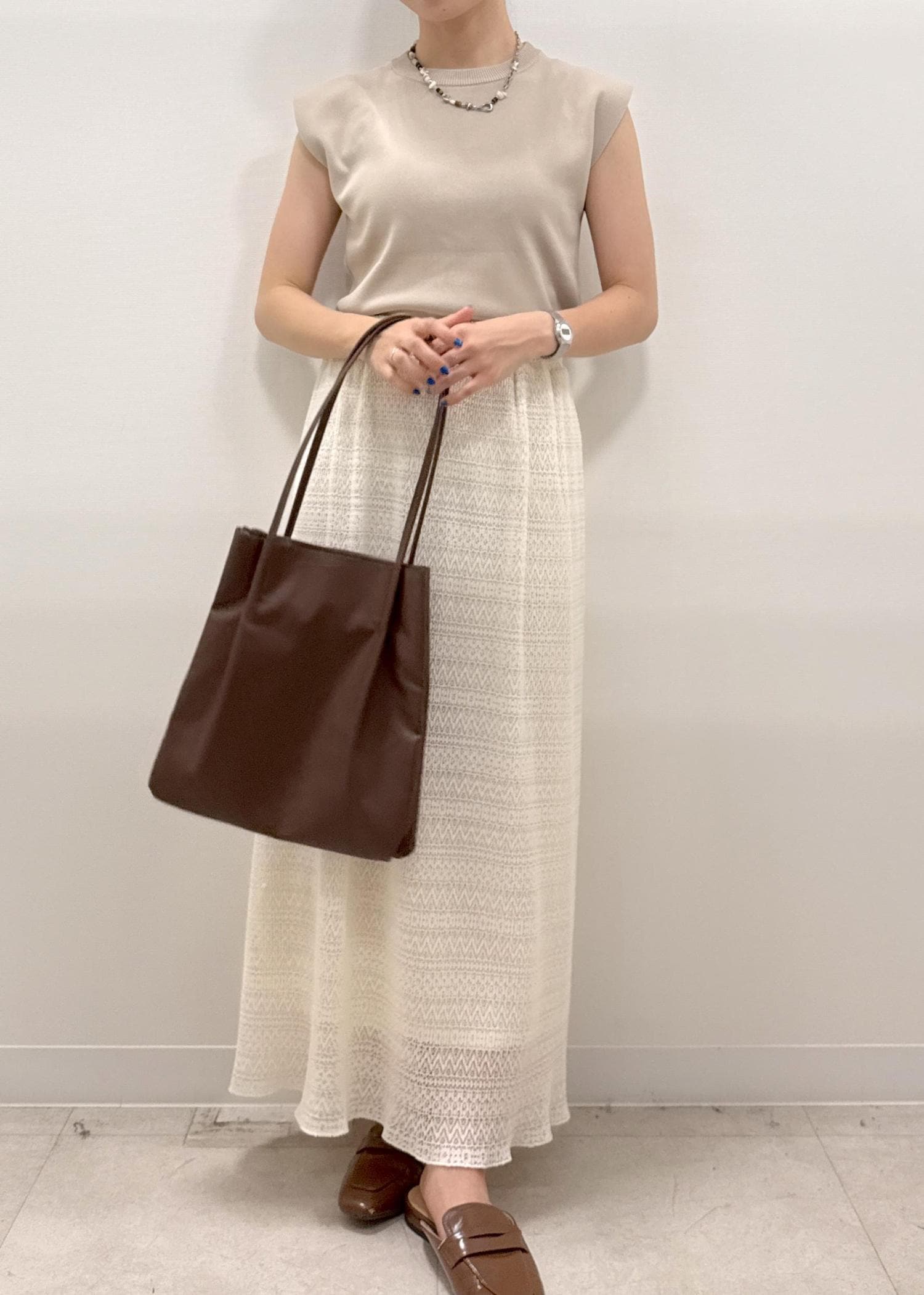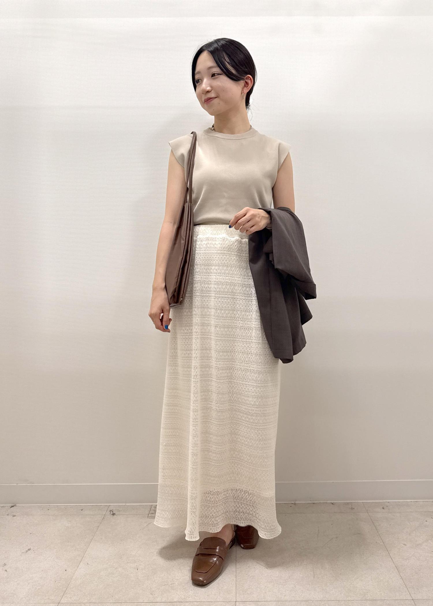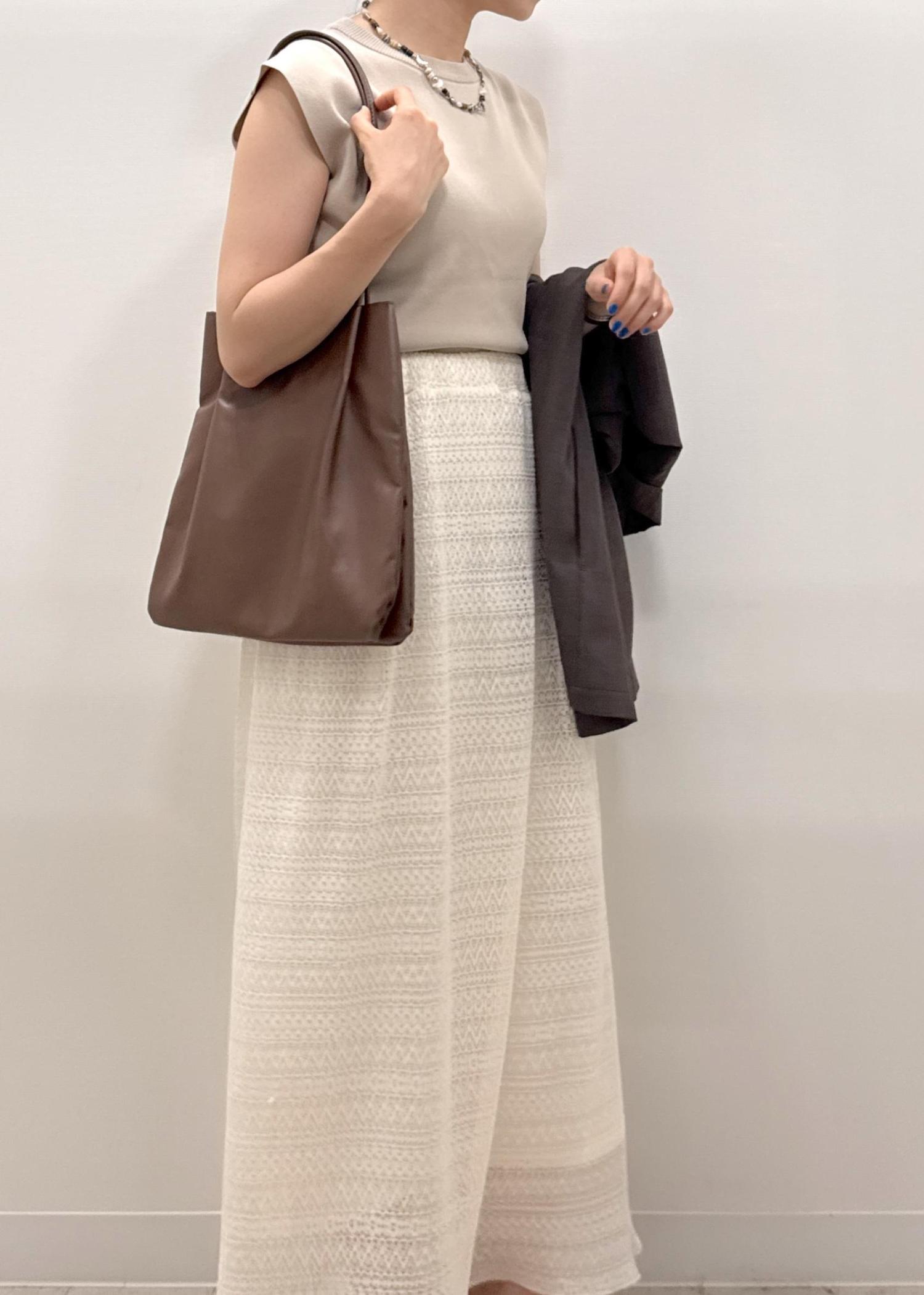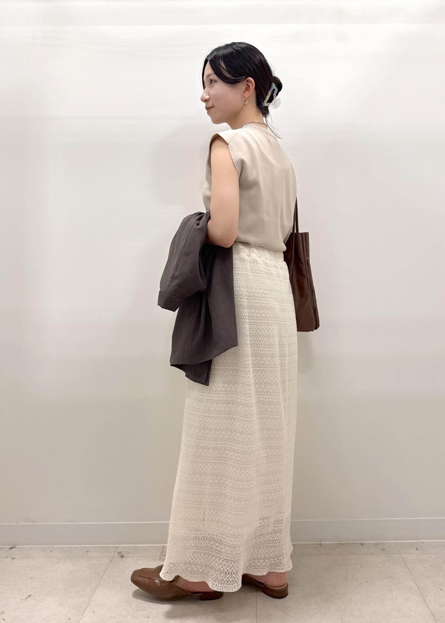 裏地付きですが若干透け感が気になったので同系色のインナーを合わせるのがおすすめです!