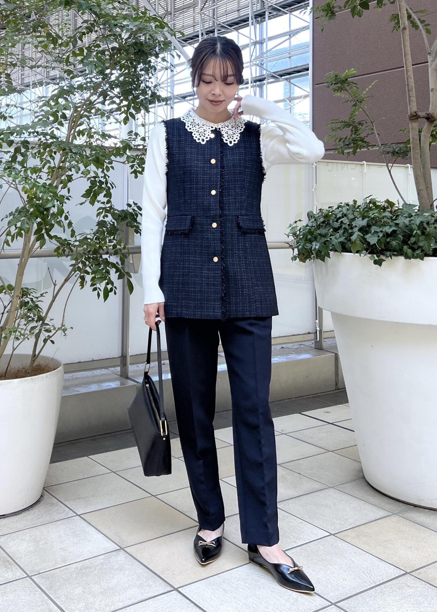 長すぎない着丈なので、ボトムのシルエットを選ばず合わせやすい丈感です。 -