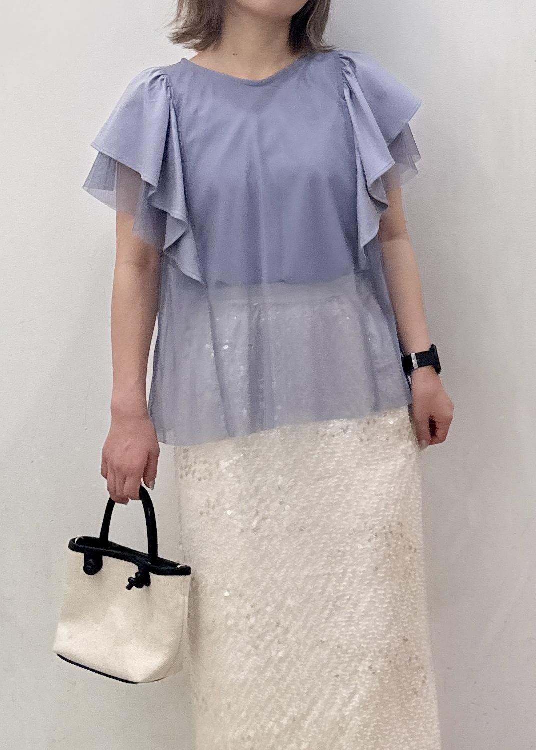 タイトめなシルエットのスカートと合わせれば、ちょっと大人なフェミニンコーディネートに☺︎