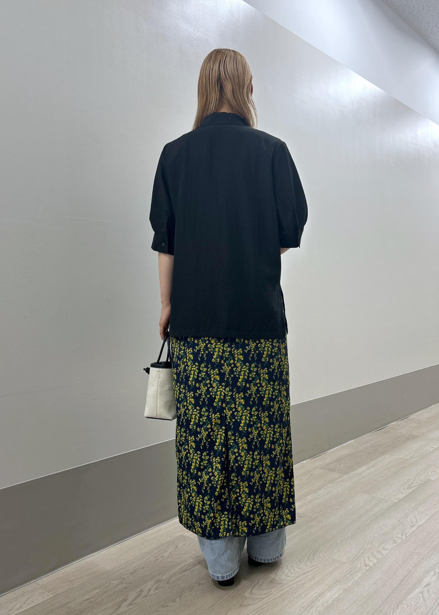 薄手の素材感でパンツとレイヤードしてもスッキリ着用できます。 -