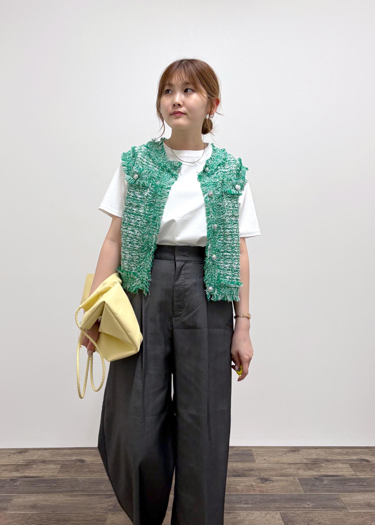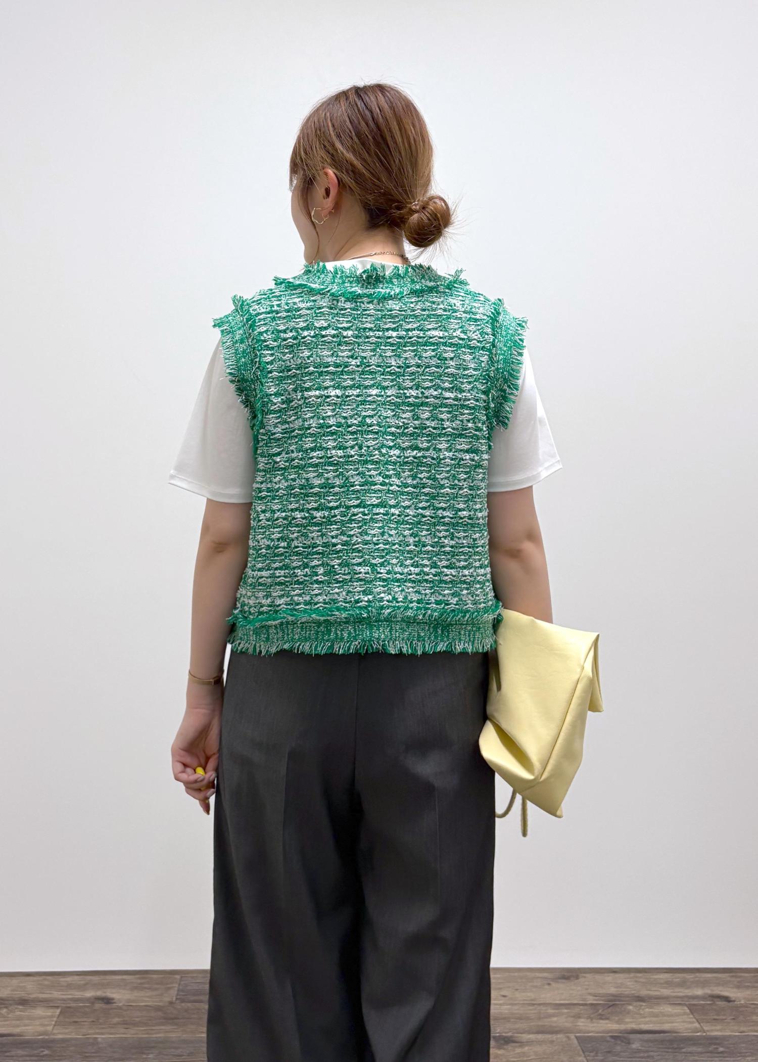【WEB限定カラー】【サマー・ツイード】着丈が選べるジレベスト/スリーブレスカーディガン
