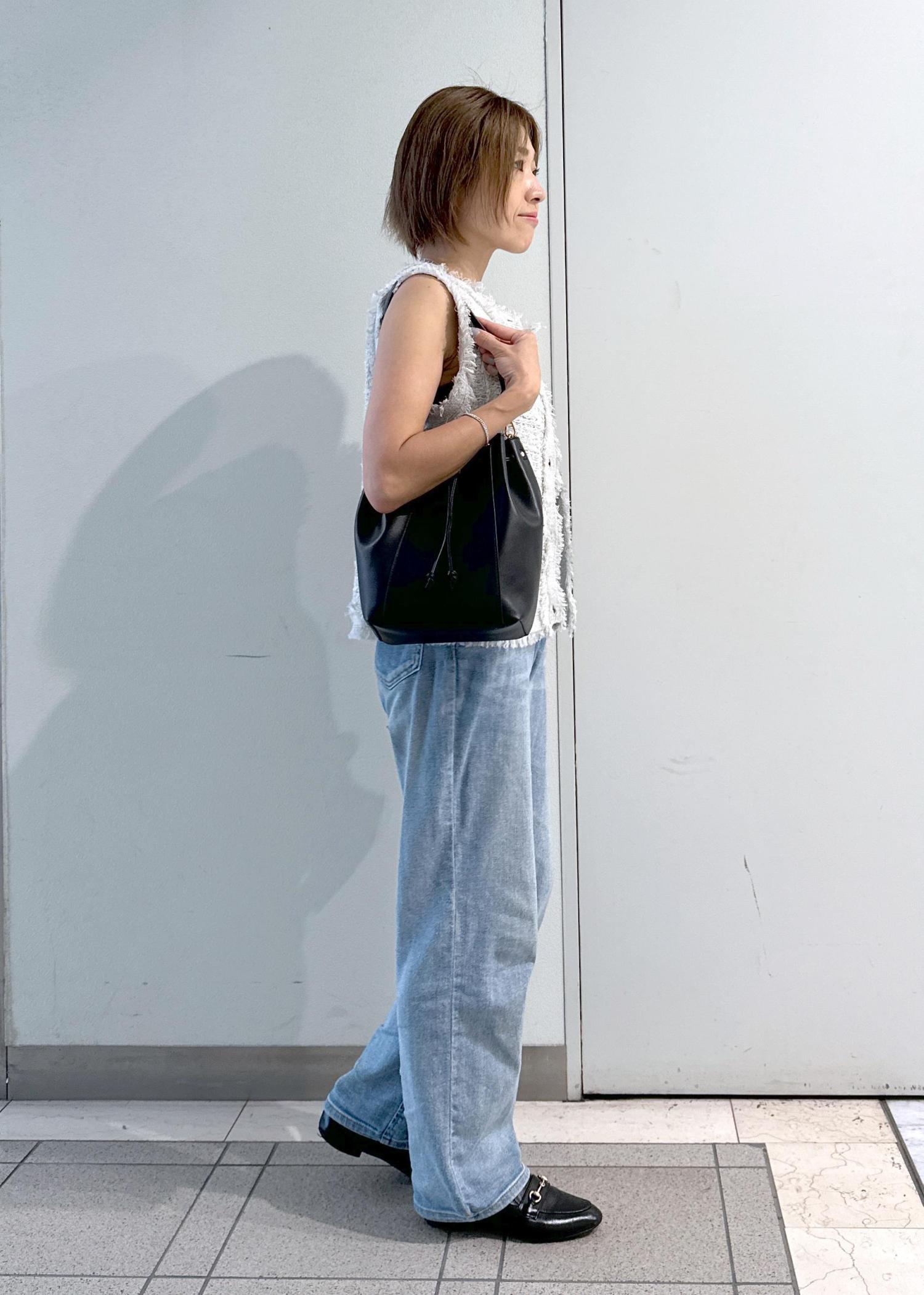 着丈もスッキリとしているので、スニーカーやフラットシューズの合わせもオススメです。 -
