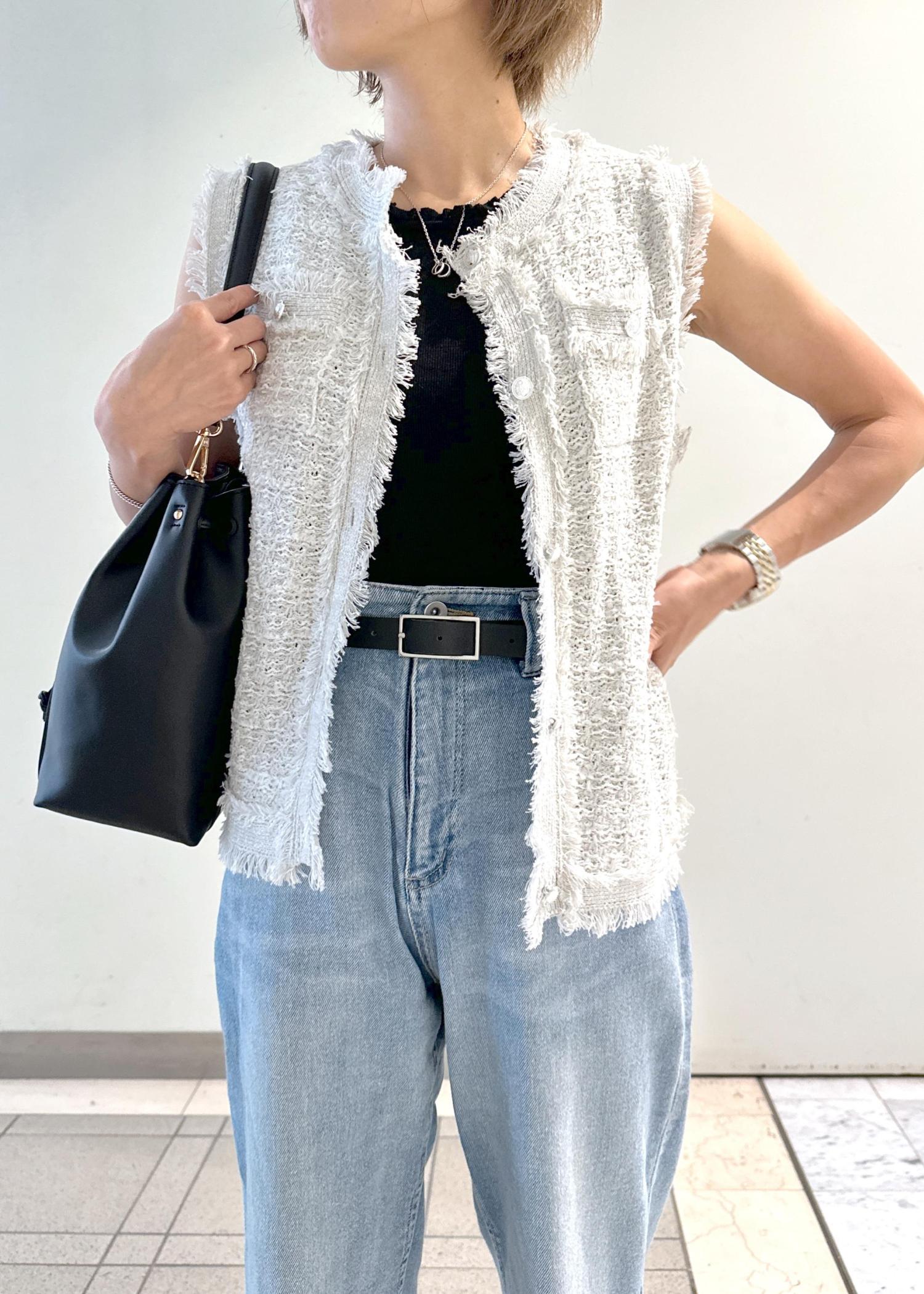 ROPÉ PICNIC【WEB限定カラー】【サマー・ツイード】着丈が選べるジレベスト/スリーブレスカーディガンライトグレー / 38T¥4,994レビュー柔らかな生地感で、夏でもオシャレに着れるサマーツイードです。
