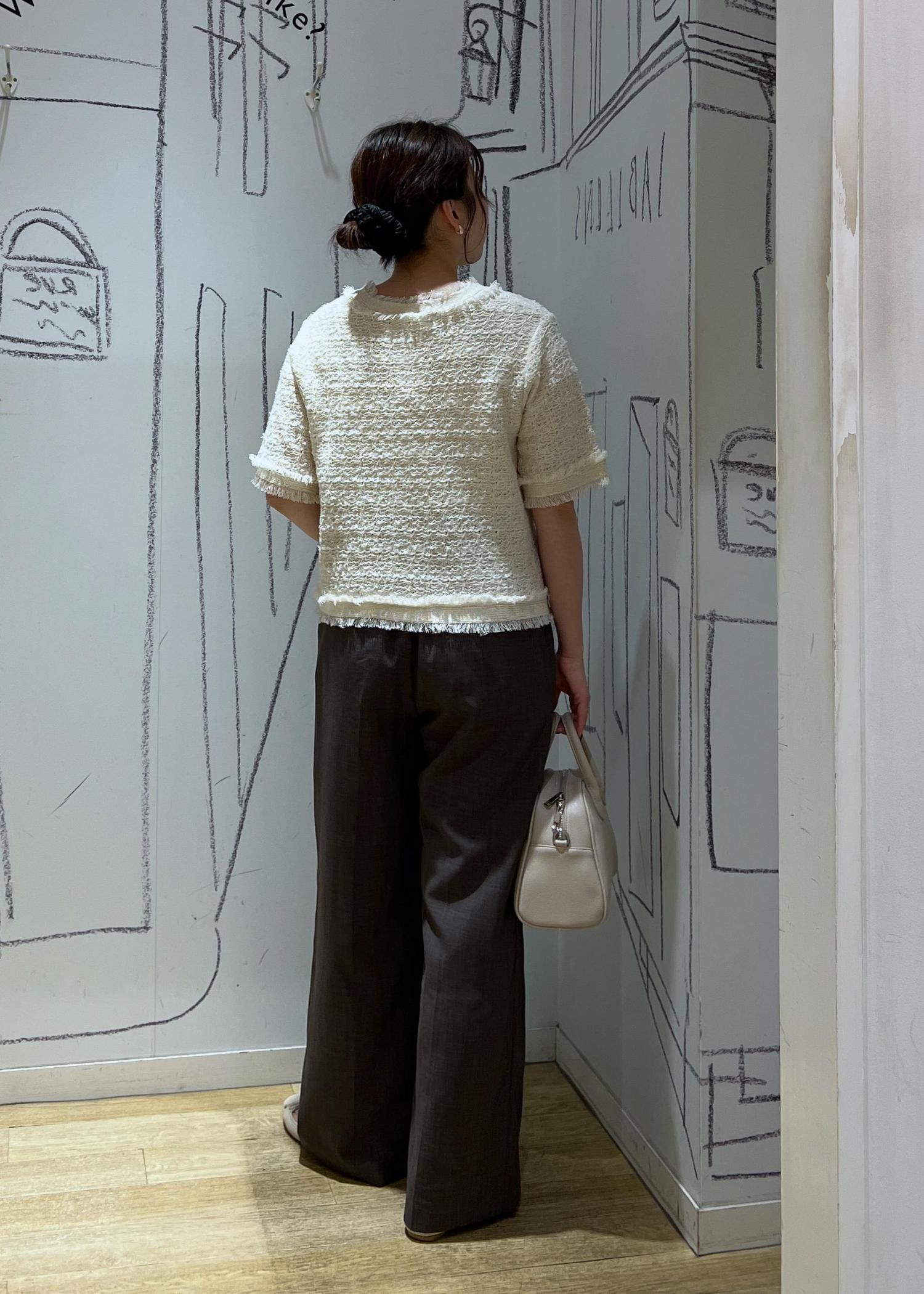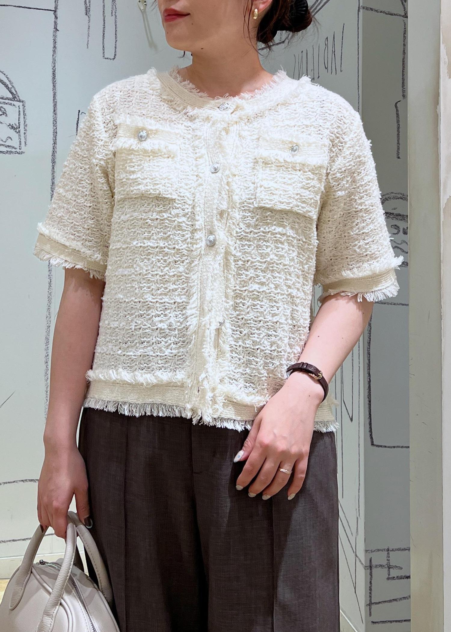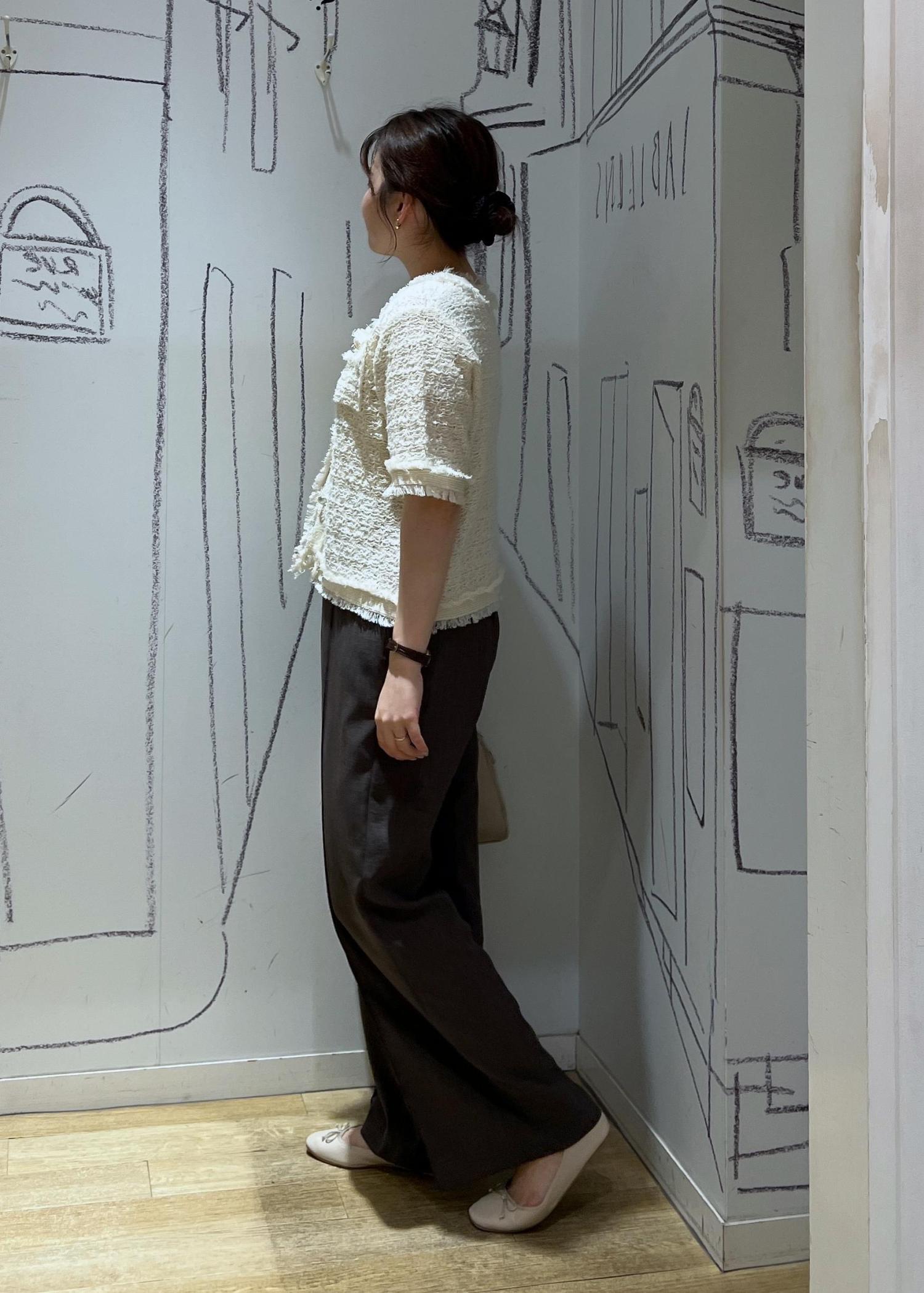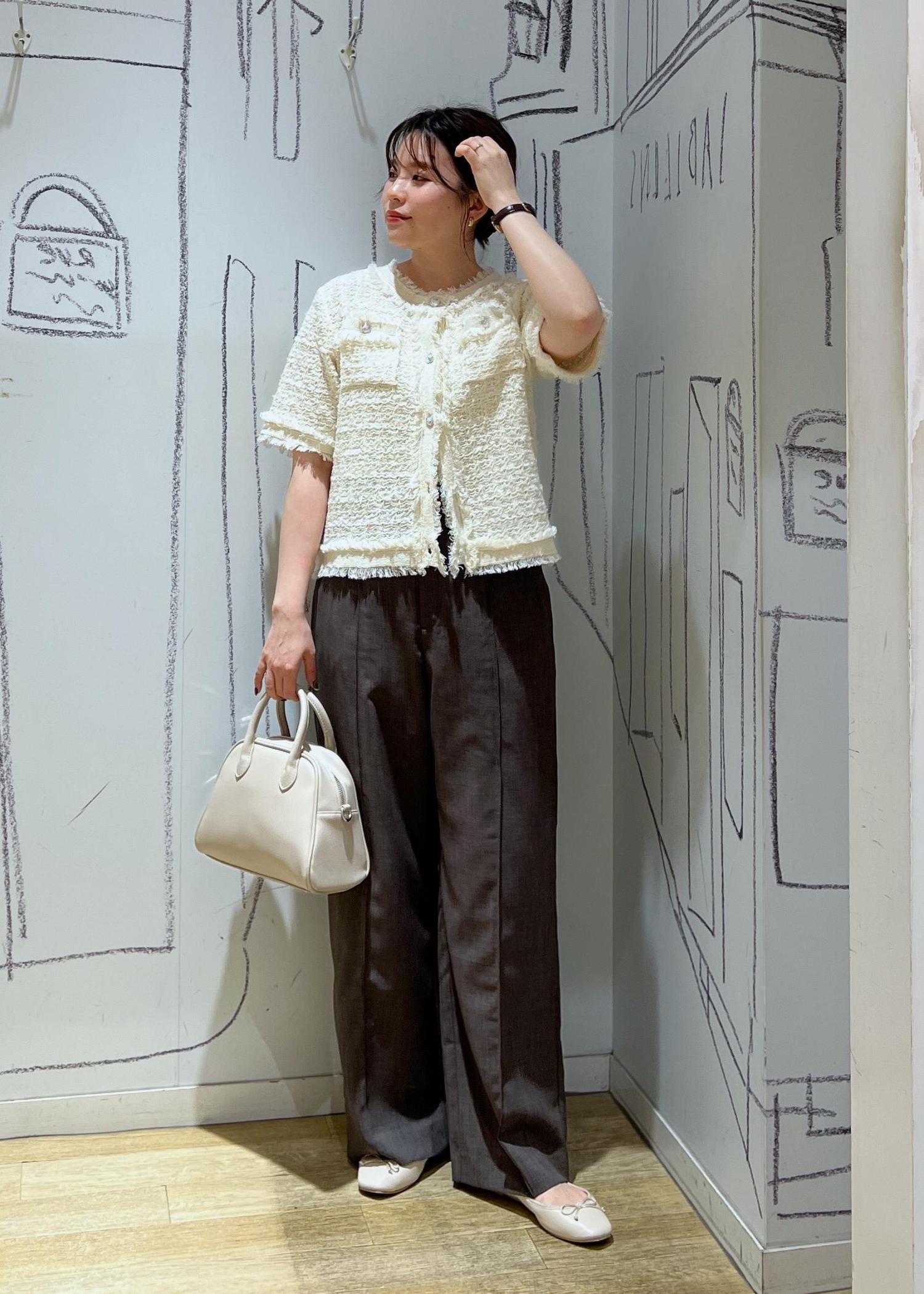 1枚でもカーディガンとしてもかわいいサマーツイードカーディガンでパンツスタイルのお仕事コーデにしてみました!