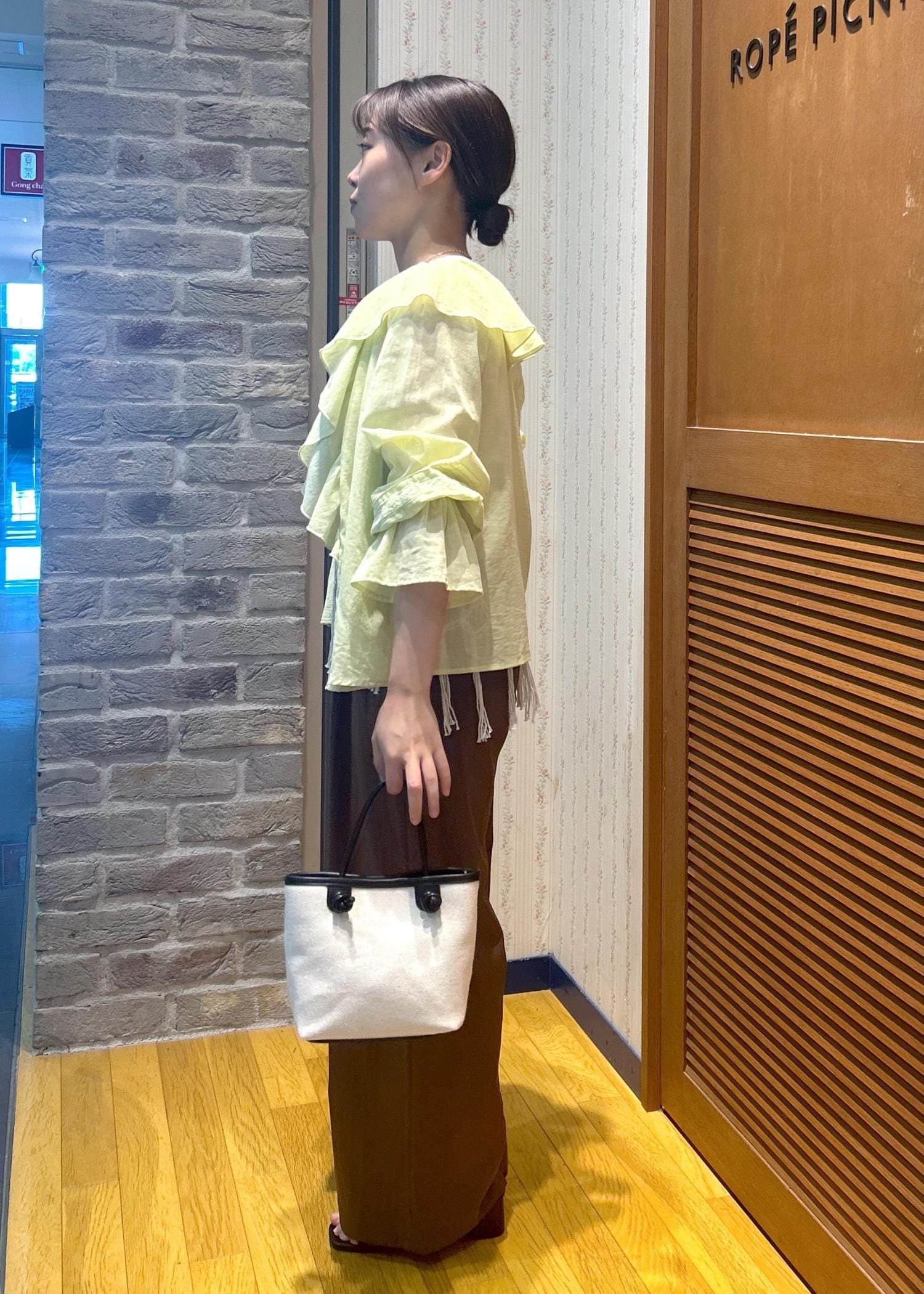 身幅や腕まわりともにゆるっとしたサイズ感で、ふんわりしたシルエットが可愛いです!着丈は骨盤にかかるくらいで、ボトムにインしても、アウトスタイルでも、どちらでも使いやすい印象でした。
