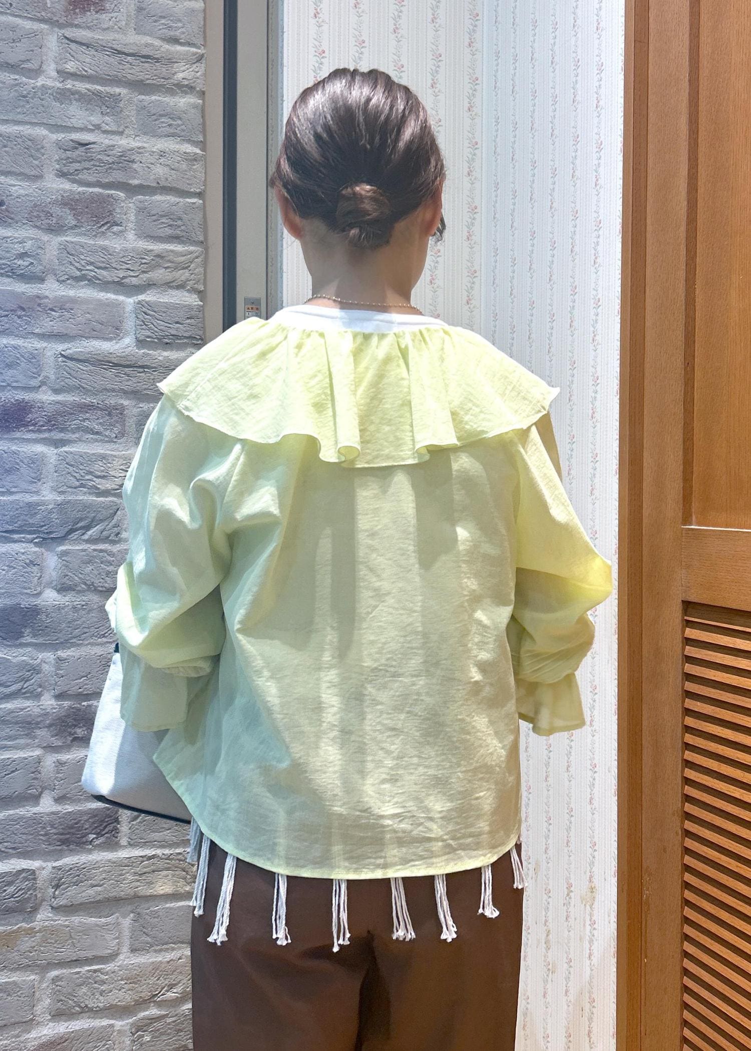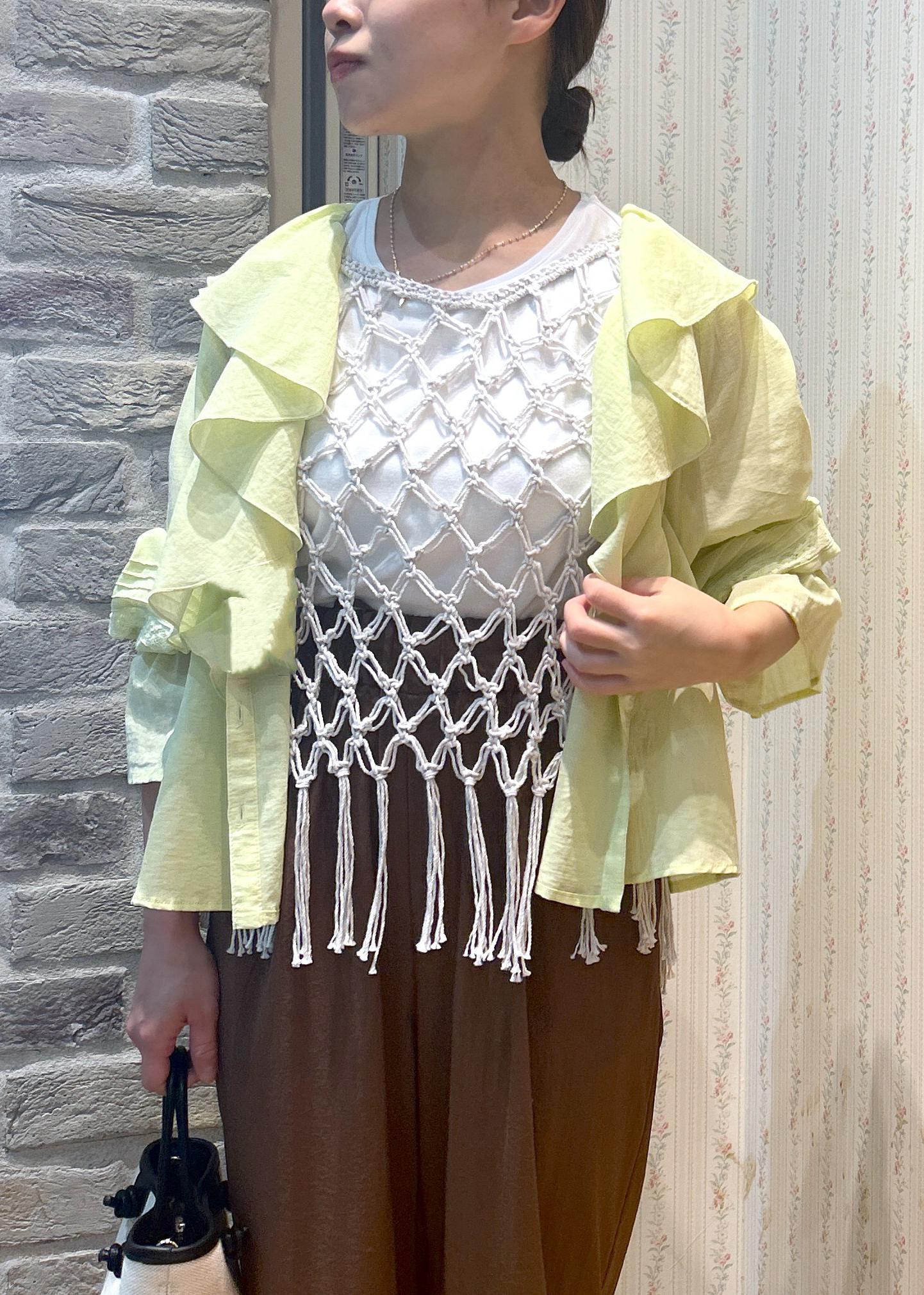 カジュアルな組み合わせに、ワンポイントで甘めなデザインのフリルシャツを羽織ってみました!