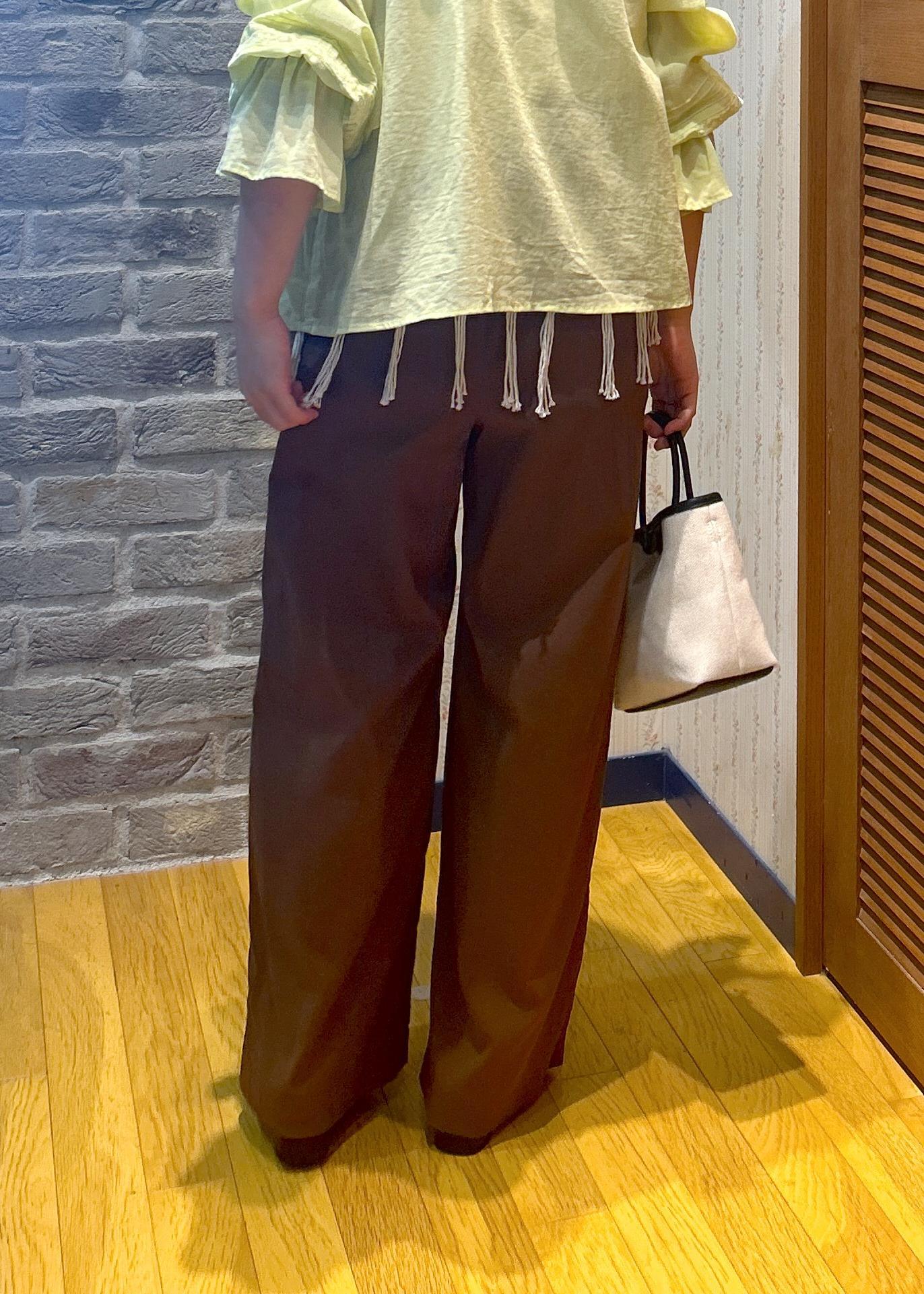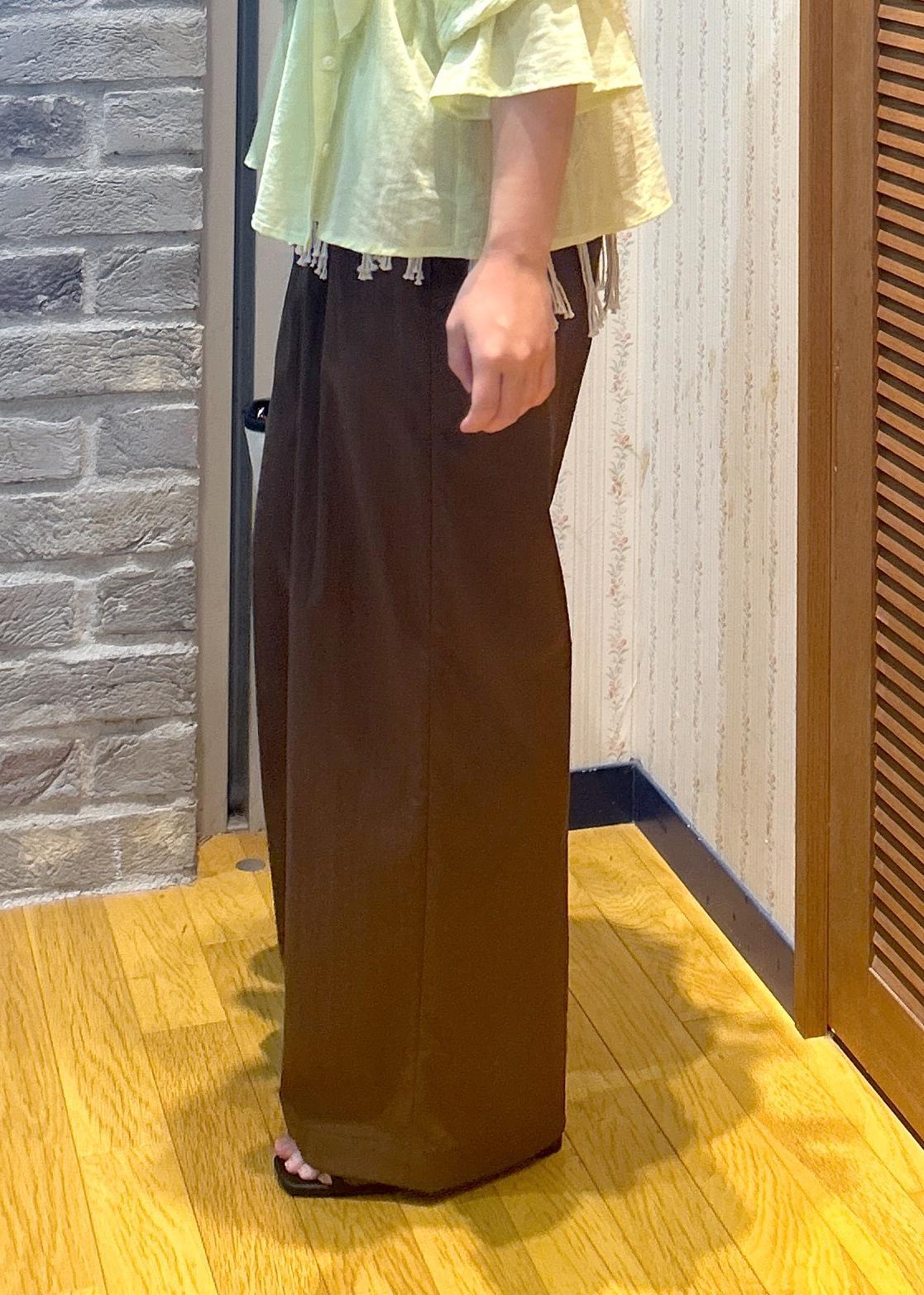 幅広めのつくりですが広がりすぎずにストンとまっすぐなシルエットなので脚のラインがキレイです。ウエストもゴムで履き心地がラクなのと、素材も涼しくて快適です。