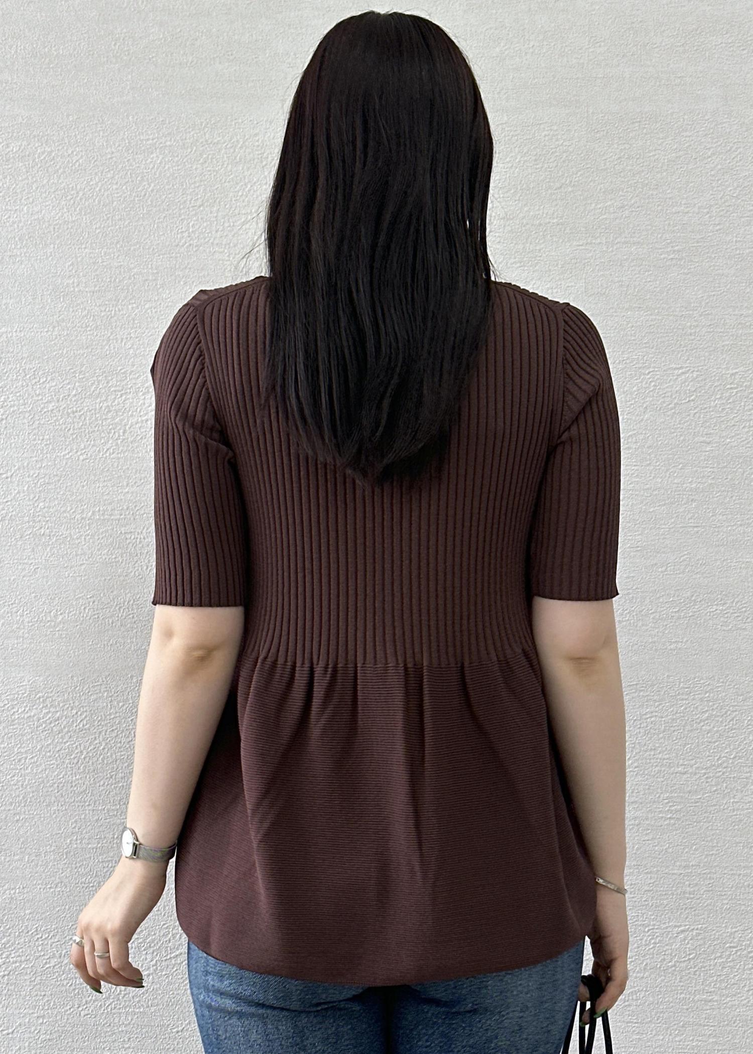 リブニットで伸縮性があります。サラッとしたニットなので夏でも快適に着用出来ます。