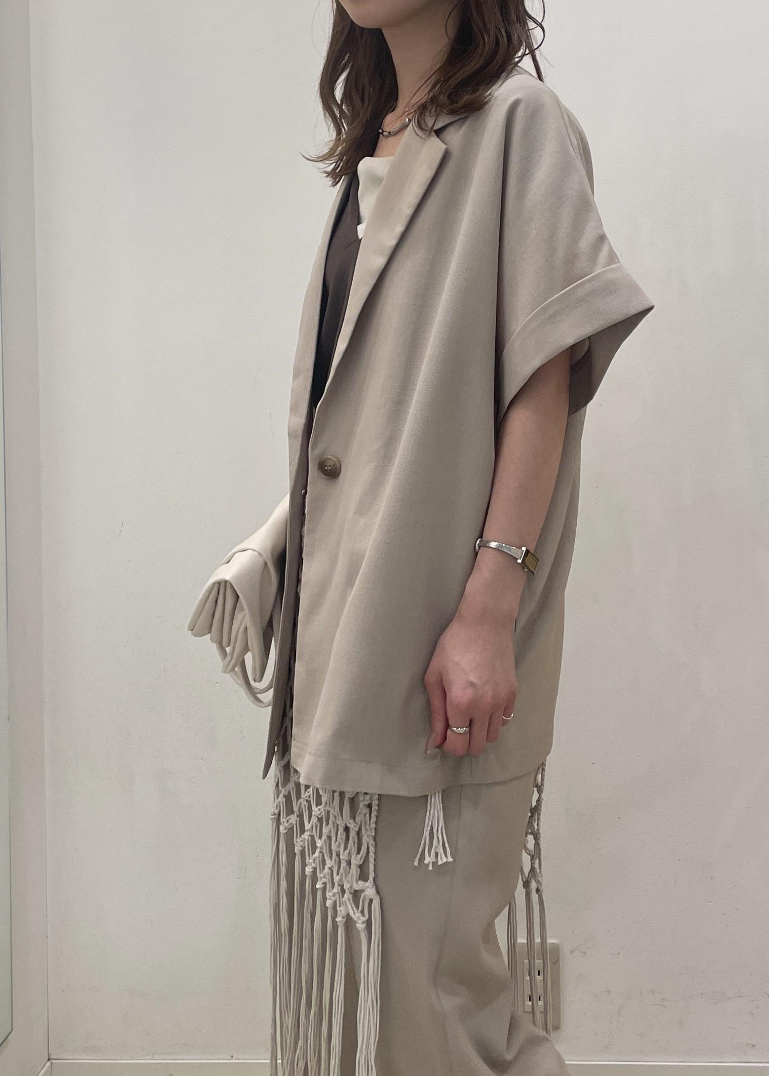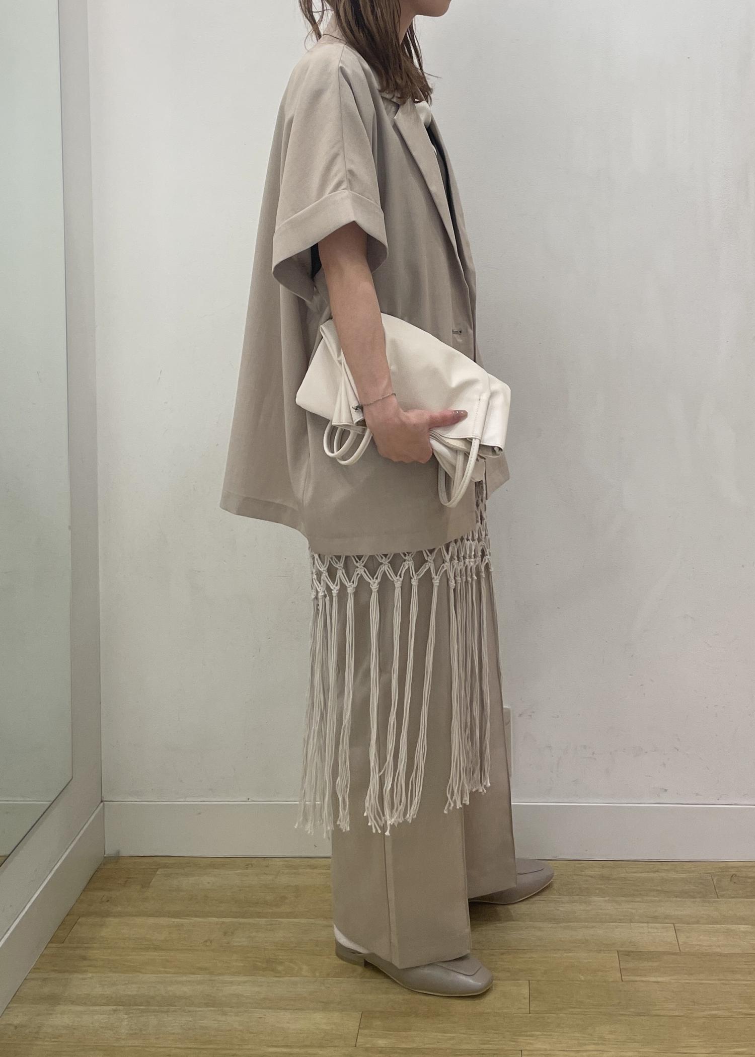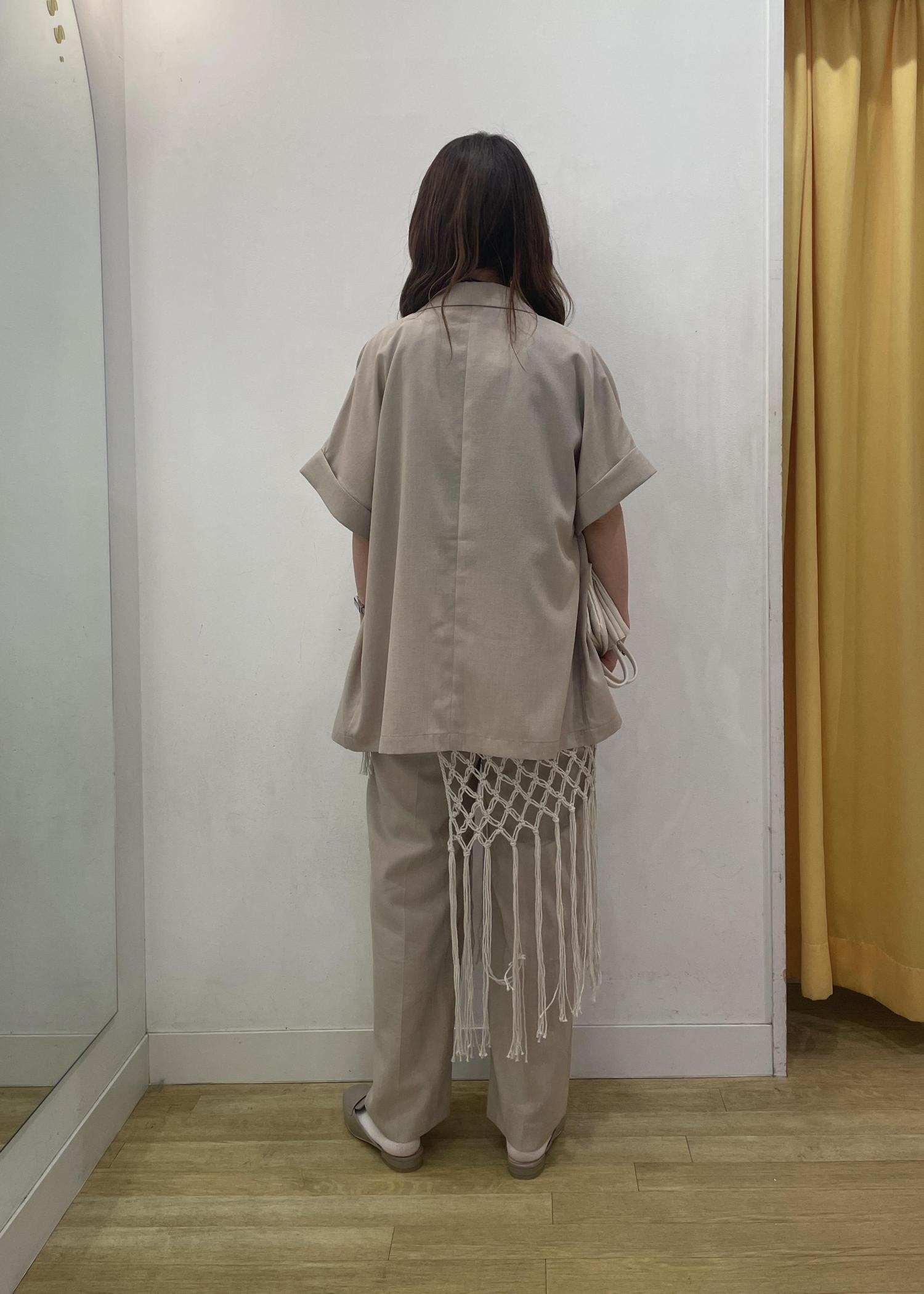 同シリーズのパンツを合わせたセットアップコーデはお仕事着としても着ていただけて、