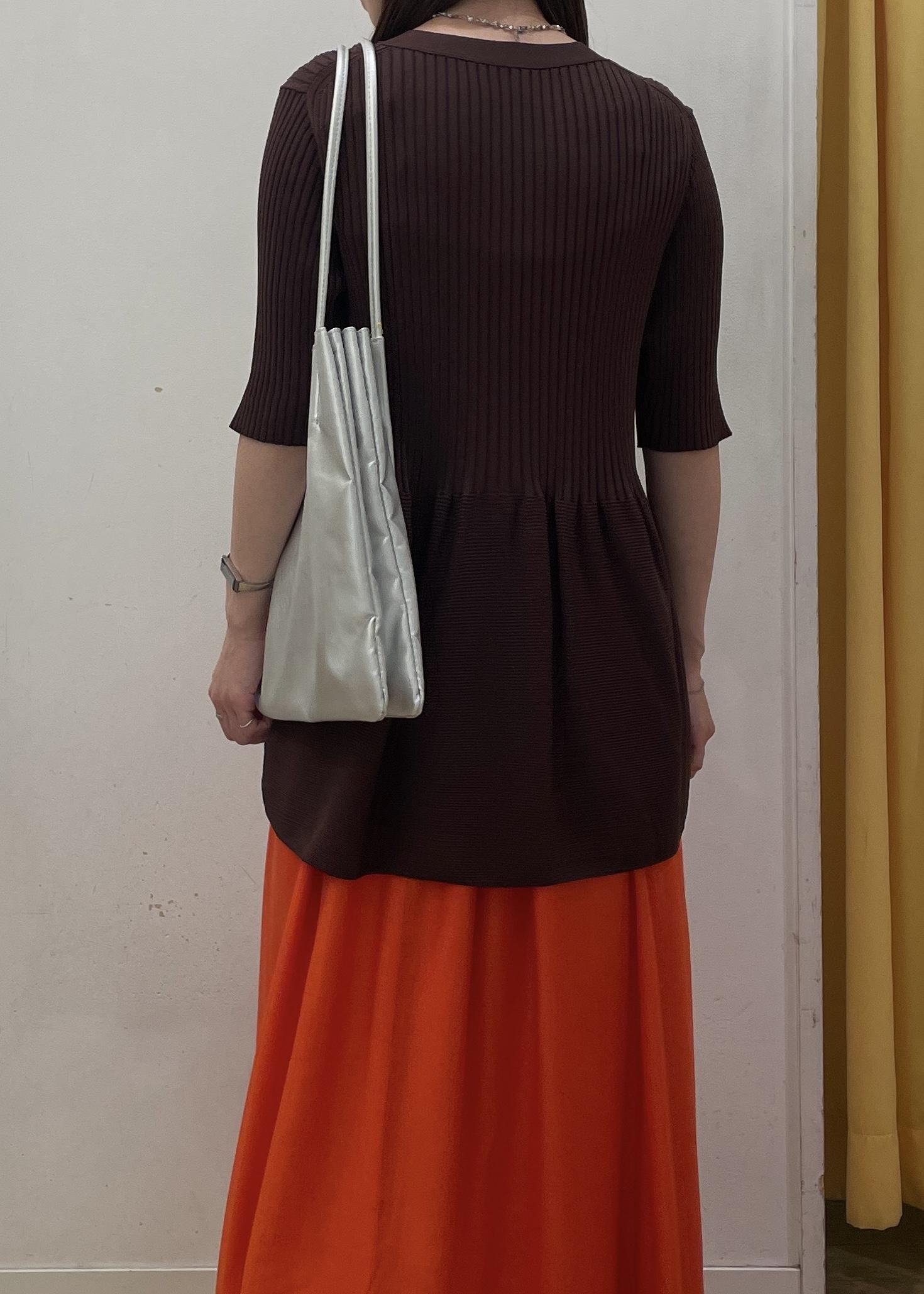 ビビットなカラーですが裾に透け感があるので夏場でも重たく見えず着用していただけます。