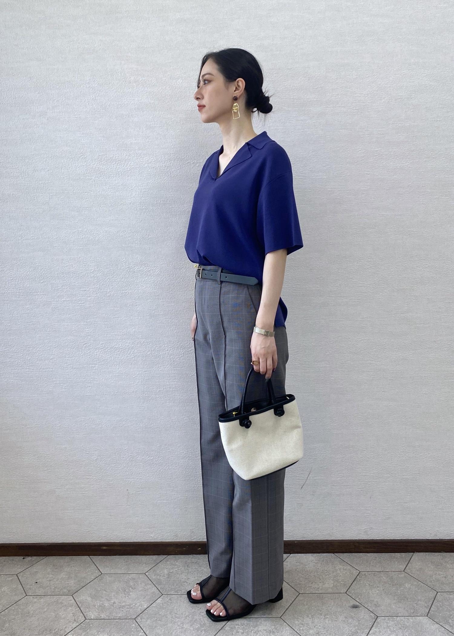 ワイドシルエットですがセンターラインが入っているのでスッキリ見えします。 -