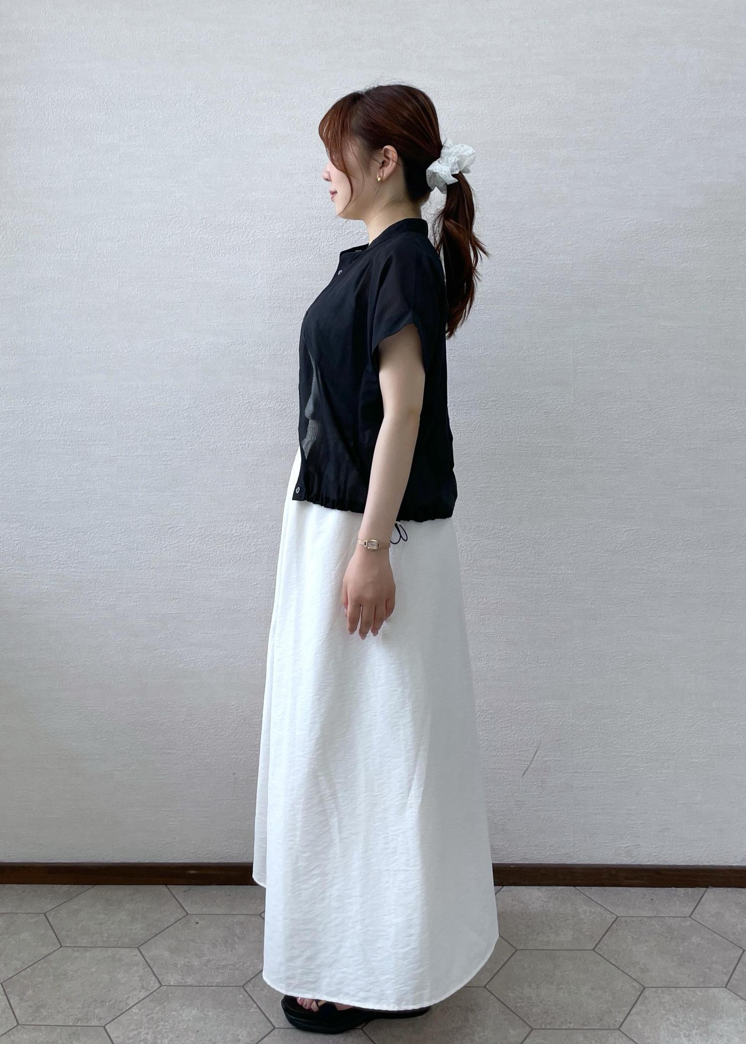 着丈が選べるので、小柄さんには嬉しいスカート♪ ふんわりとしたシルエットですが、ウエスト周りにギャザーが入っているので、着膨れせずすっきりとした印象になります! -