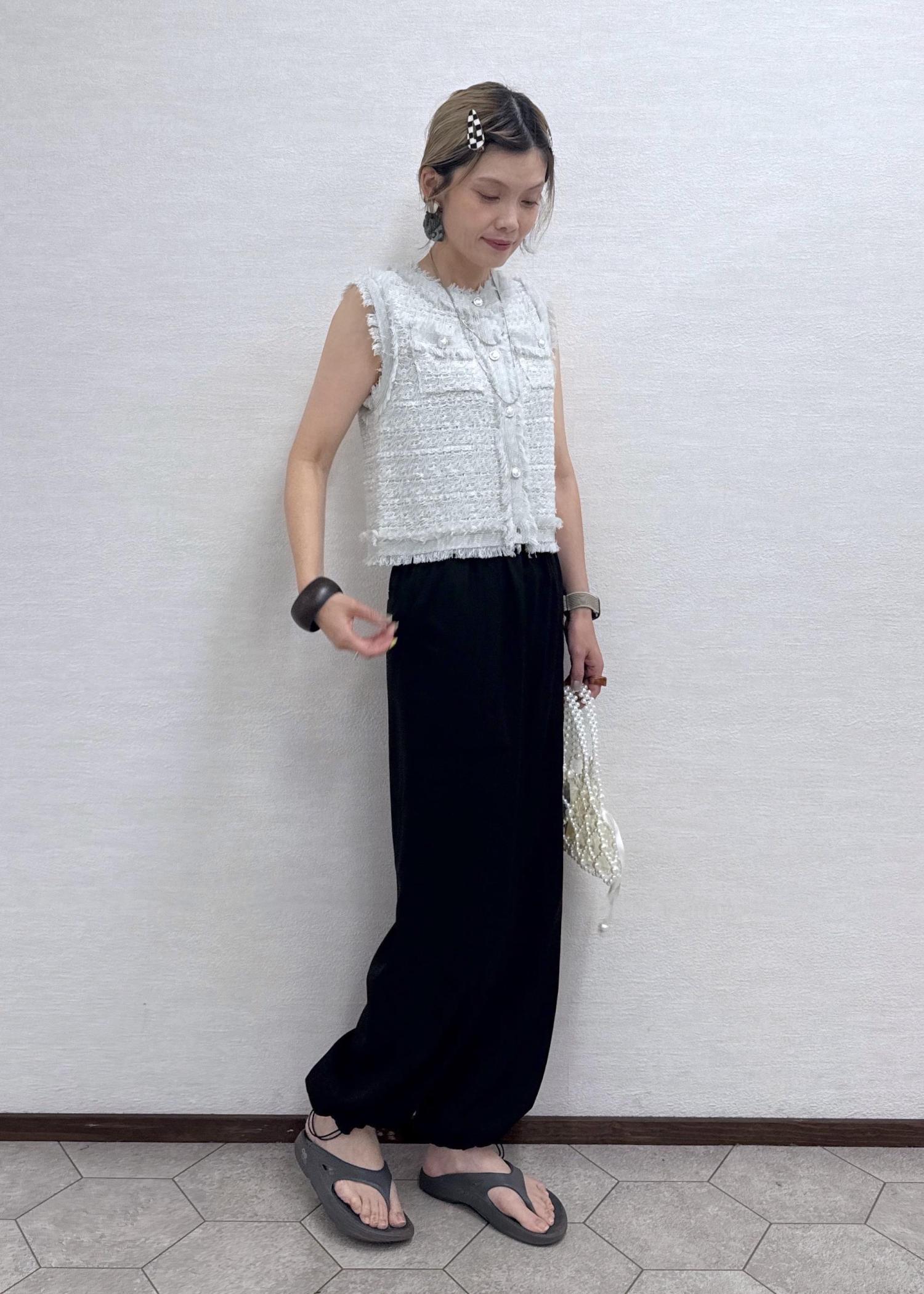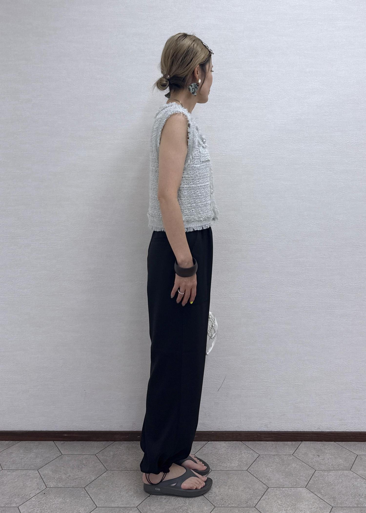 アウトレットROPÉ PICNICドロストリラックスイージーワイドパンツブラック / 38¥3,842レビュー薄手で柔らかく、暑い夏でも涼しく履けるドラストリラックスワイドパンツ。裾を絞ってアレンジも可能です。