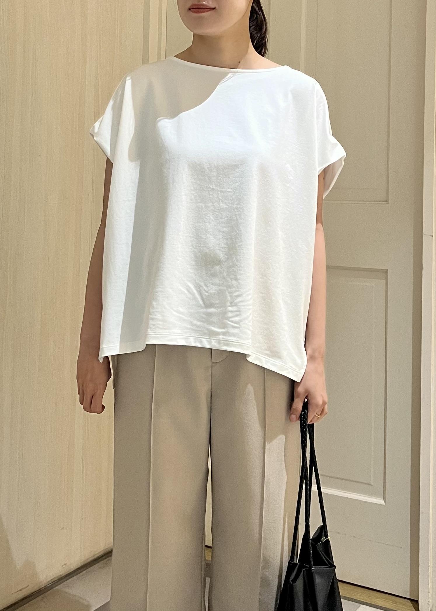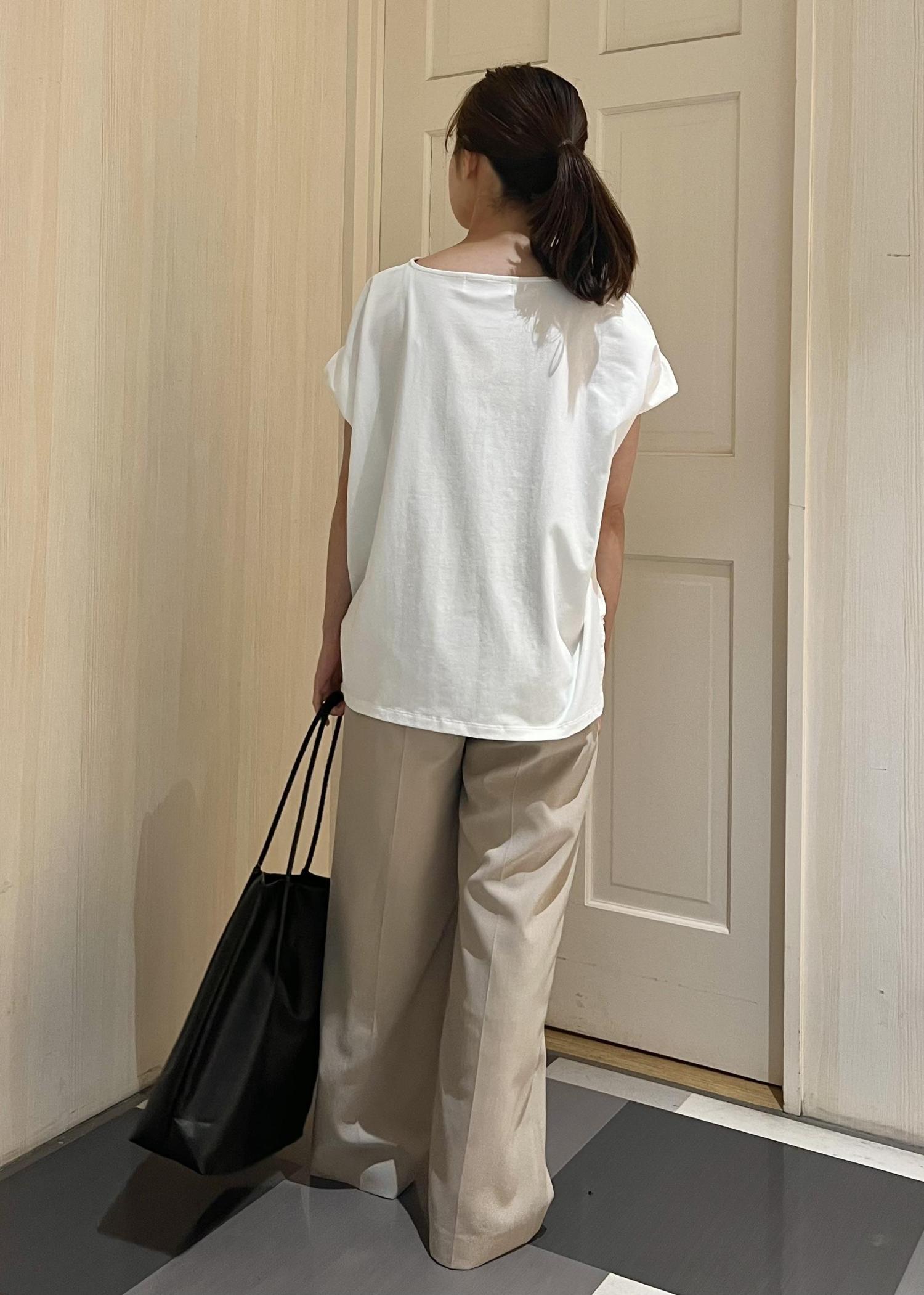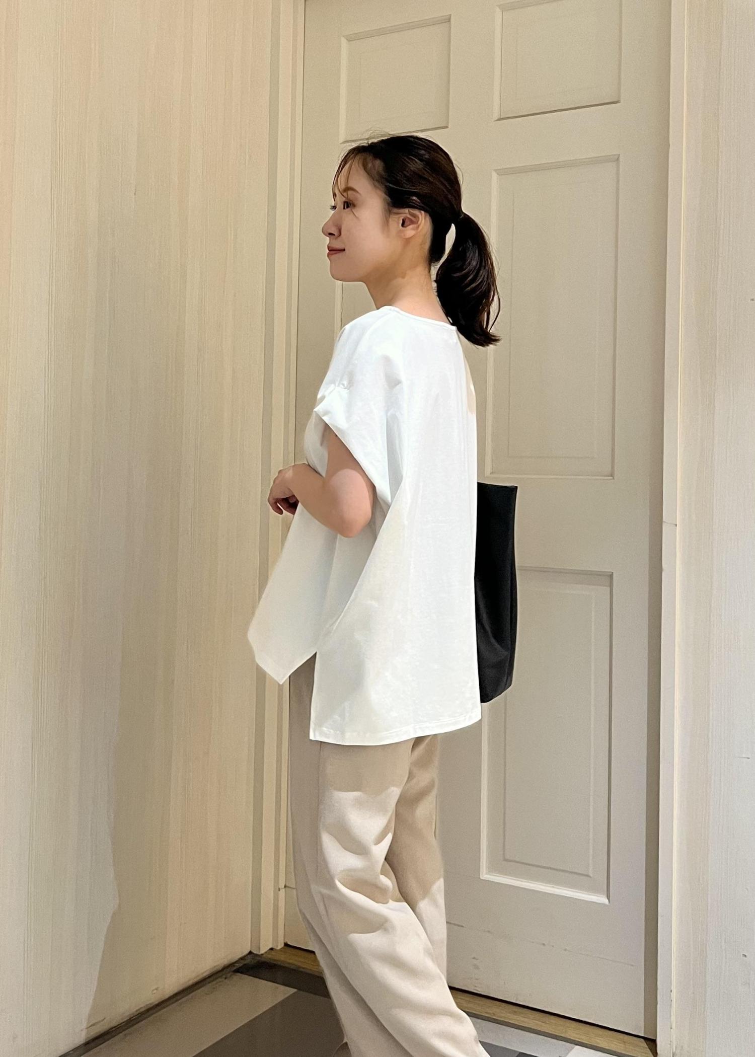 ROPÉ PICNICマルチファンクション二の腕すっきり見えカットトップスオフホワイト / 38¥2,992レビュー肩が隠れるフレンチスリーブで、身幅はゆったりめです。