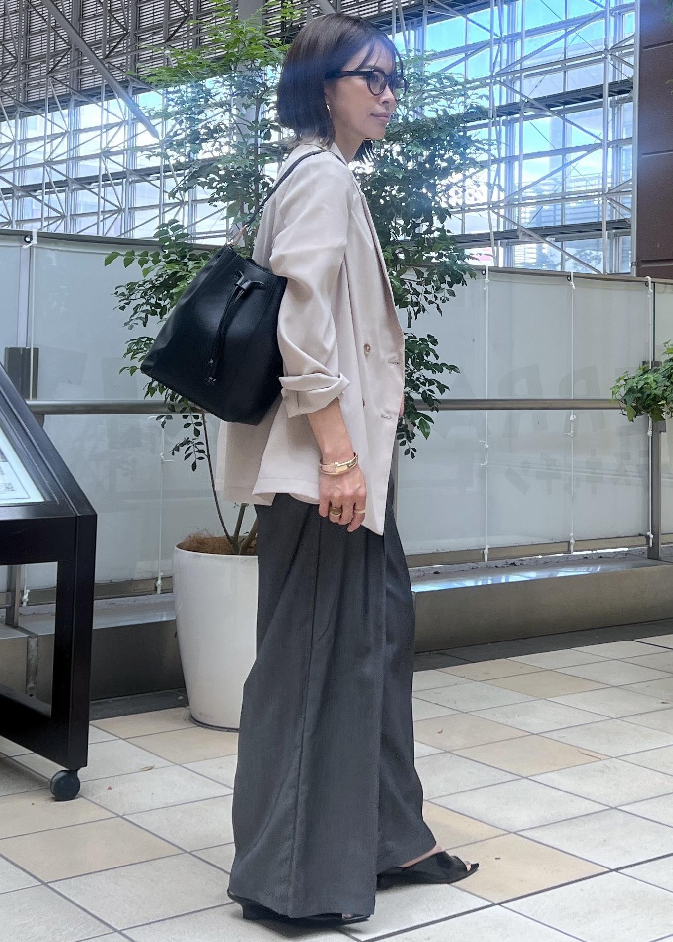 あえてゆるっとしたシルエットそのままに着て、メンズライクな雰囲気もあるスタイリングにしました。