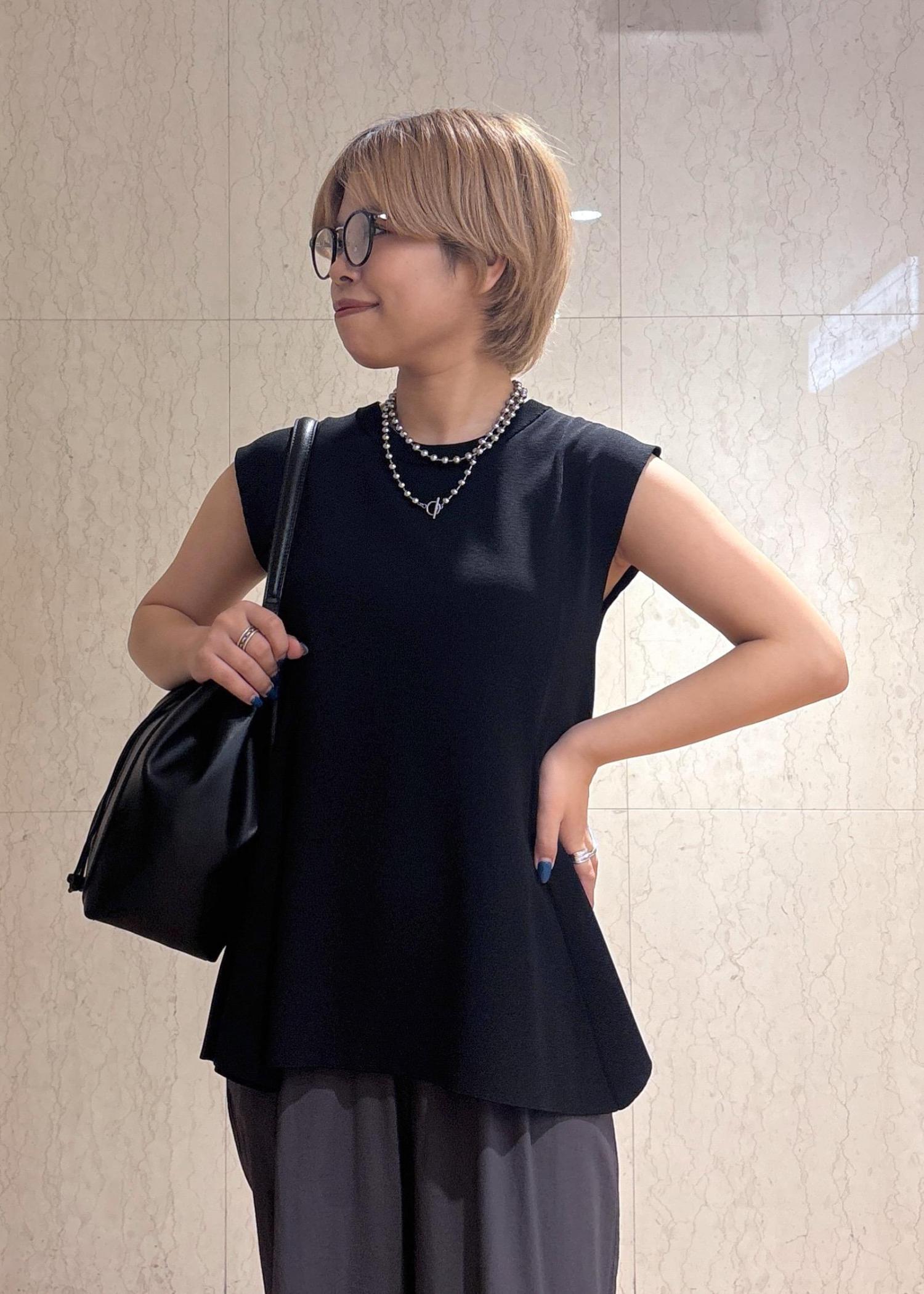 落ち感のあるトップスなので、スッキリとしたシルエットでキレイめ・カジュアル問わずお召頂きやすいです。