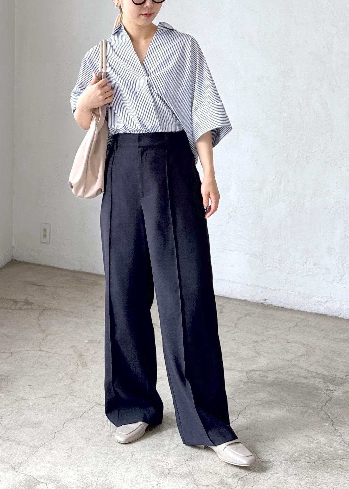 アウトレットROPÉ PICNIC【UVカット・速乾】【リネンライク・シリーズ】ピンタックワイドスラックスパンツ/セットアップ対応ネイビー / 36¥3,993レビュー麻調シアーシリーズのストレートワイドパンツです。