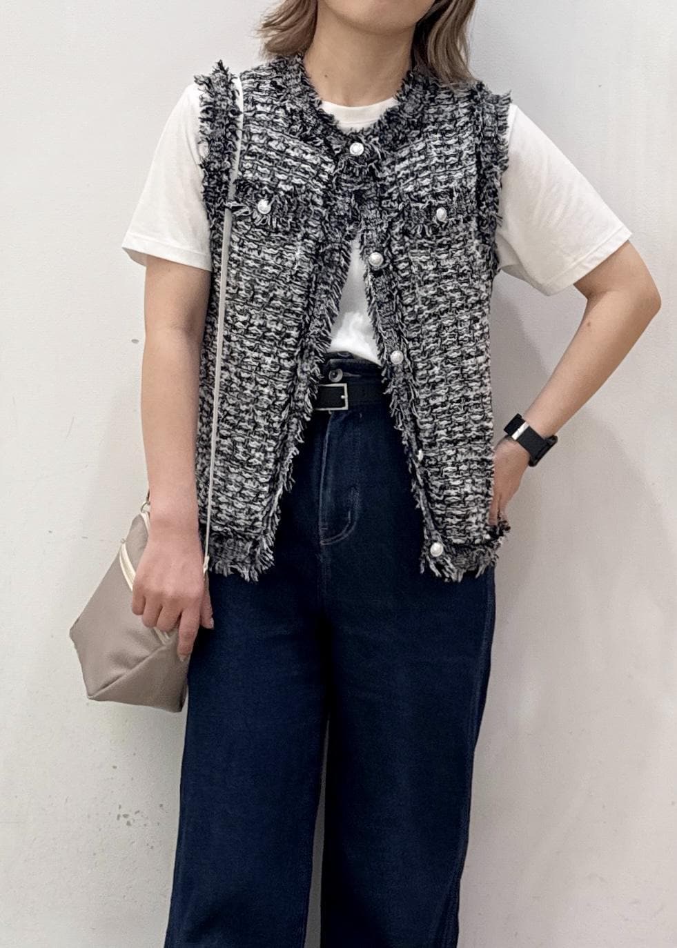 ROPÉ PICNIC【WEB限定カラー】【サマー・ツイード】着丈が選べるジレベスト/スリーブレスカーディガンブラック系 / 38T¥4,994レビュー柔らかく軽い素材感で着心地◎