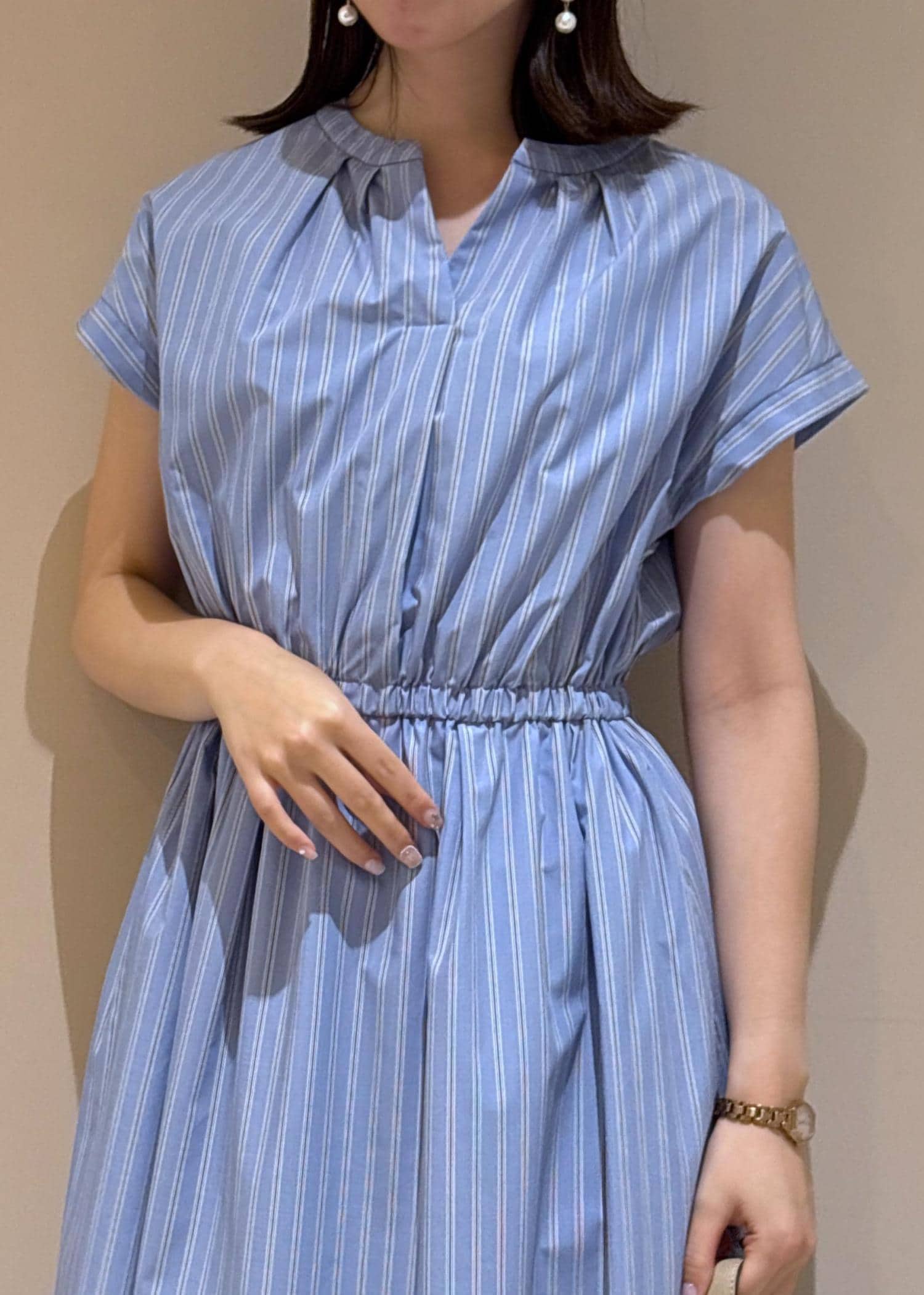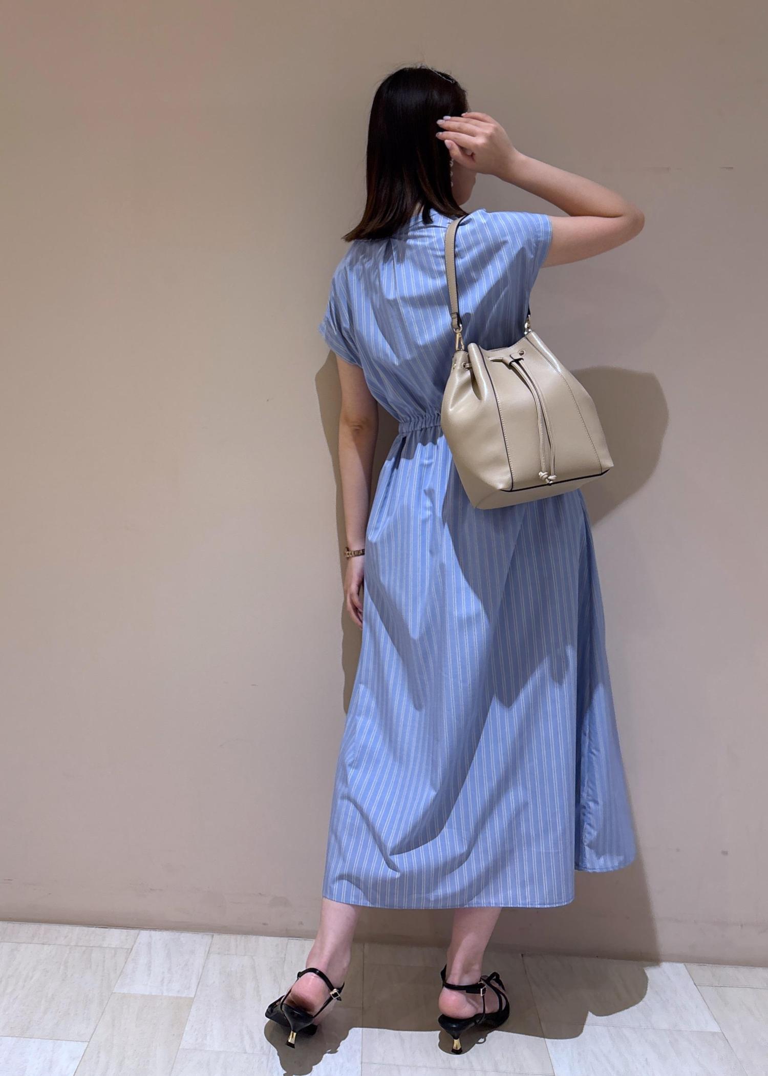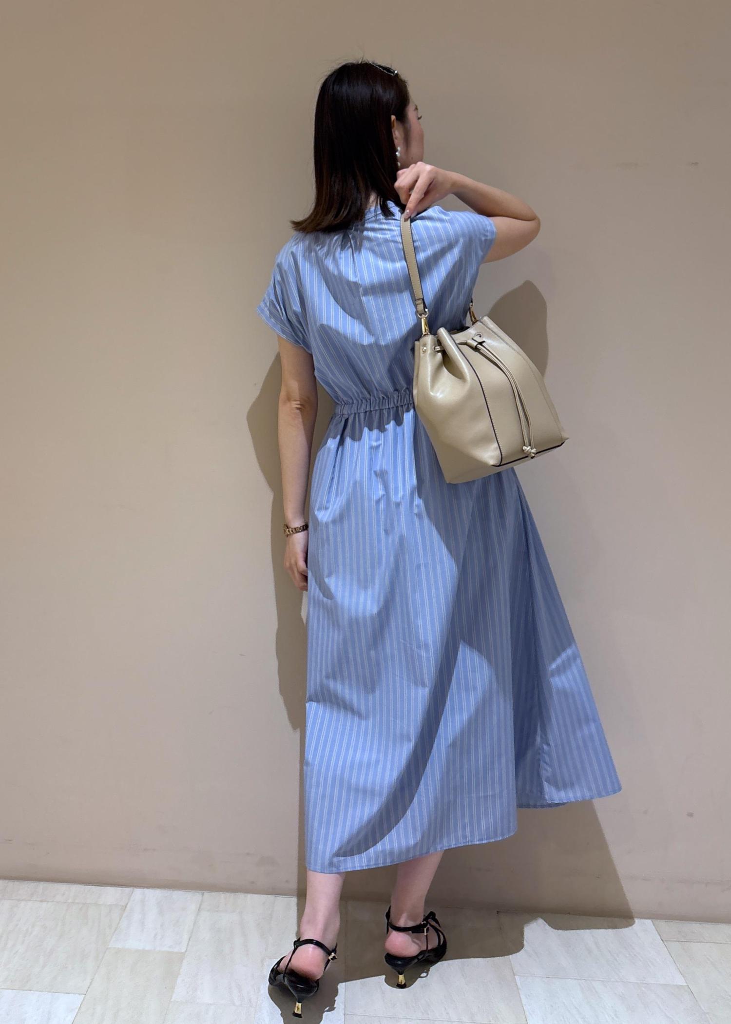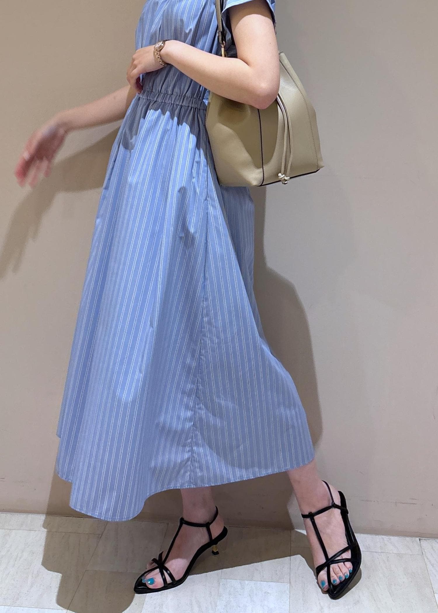 一枚着でも映えるストライプ柄ワンピースは、小物で明るくするとよりオシャレ見えします。
