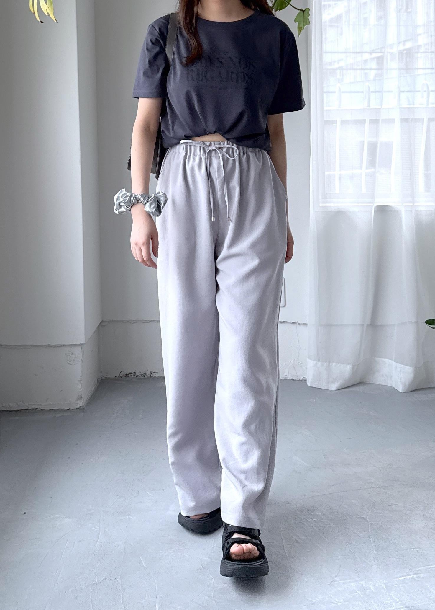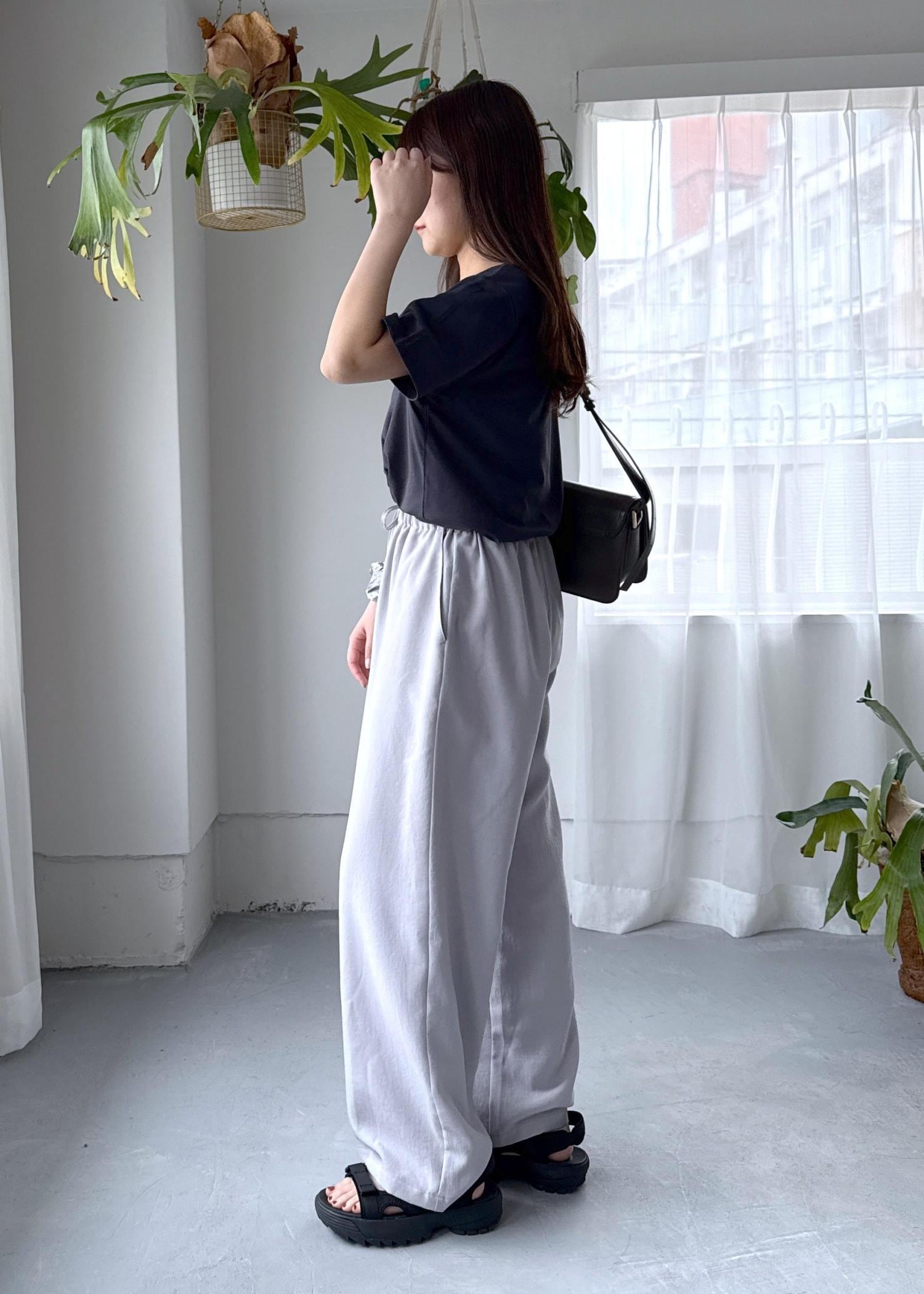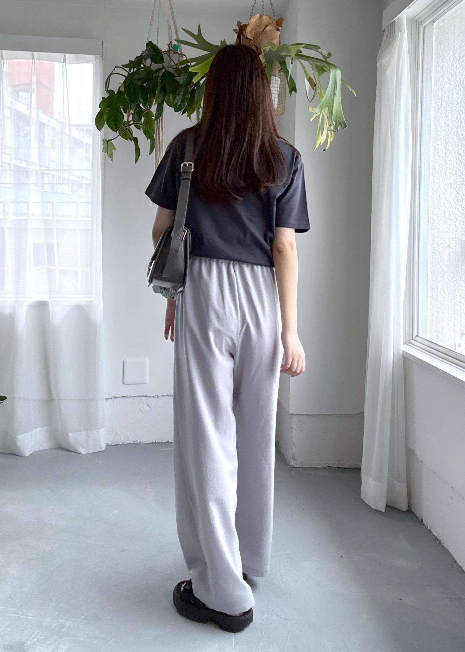 グレーのTシャツと薄めのグレーのパンツを合わせ、ワントーンコーデで着てみました!