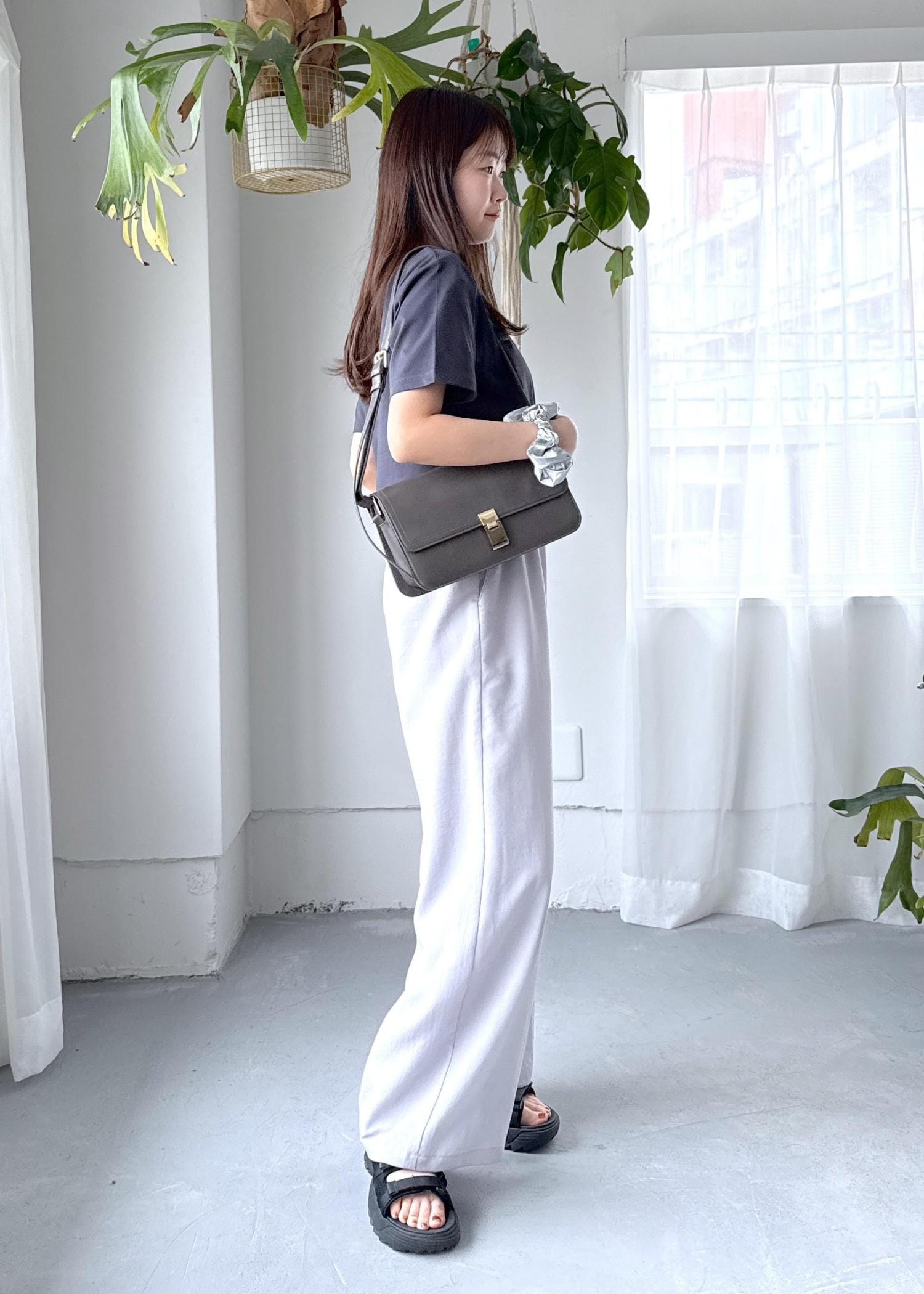 ワイドなシルエットですが裾は広がりすぎない作りなので、きれいめな合わせにも着用しやすいです。