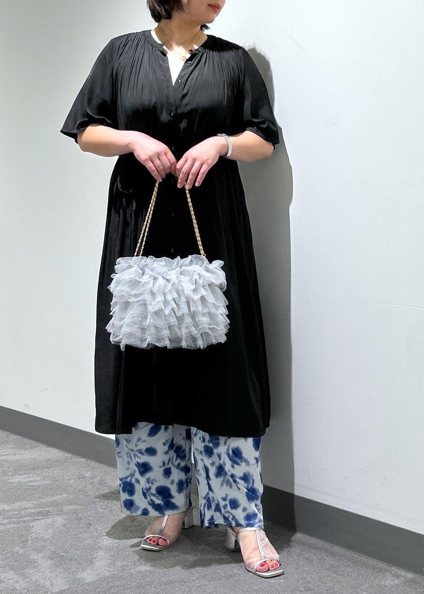 暑い時期に向けて大活躍間違いなしのハーフスリーブワンピースと、脚のラインを拾いにくいワイドシルエットのフローラルプリントパンツです。