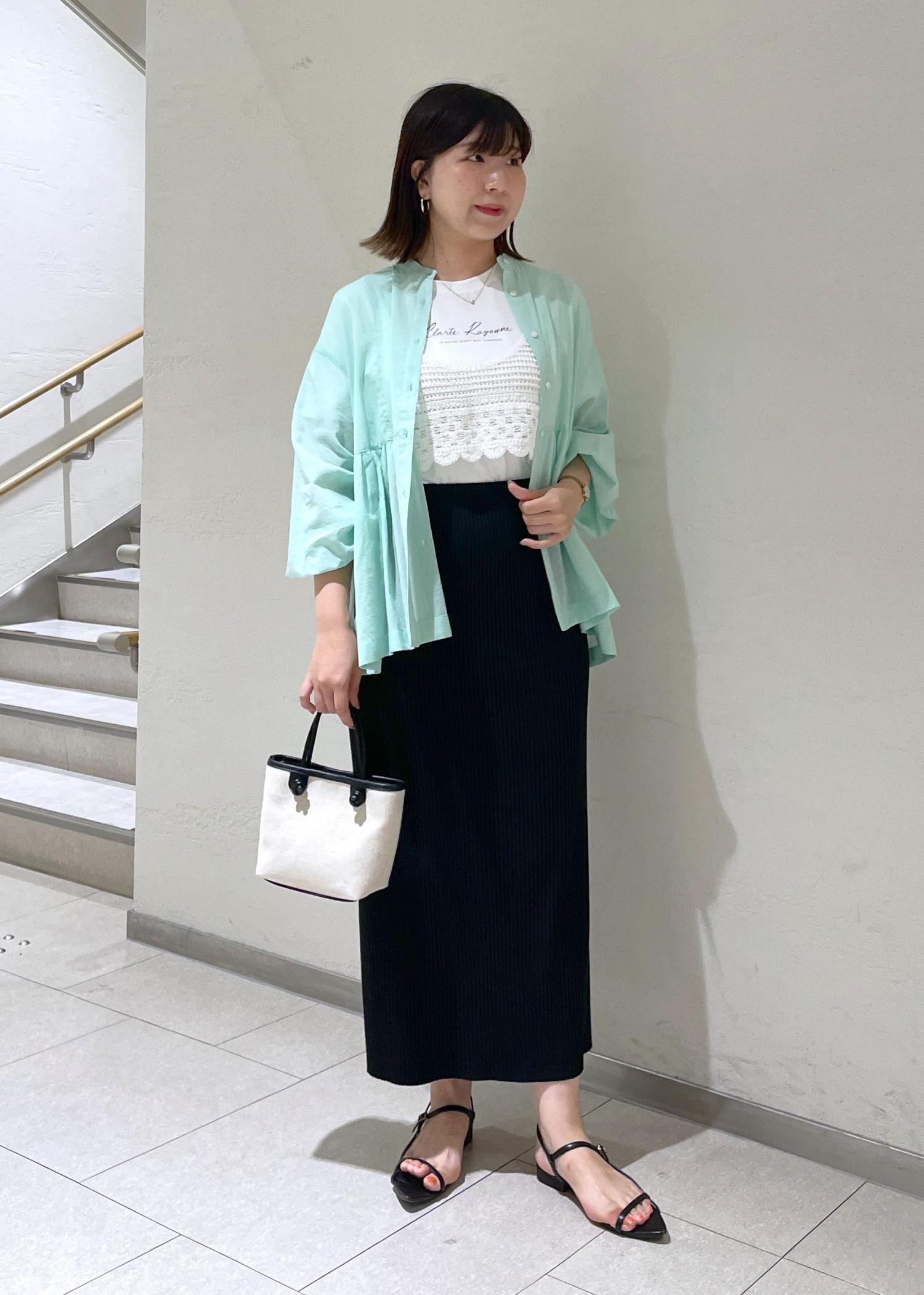 爽やかカラーなのでインナーは白でボトムを黒で引きしめました!