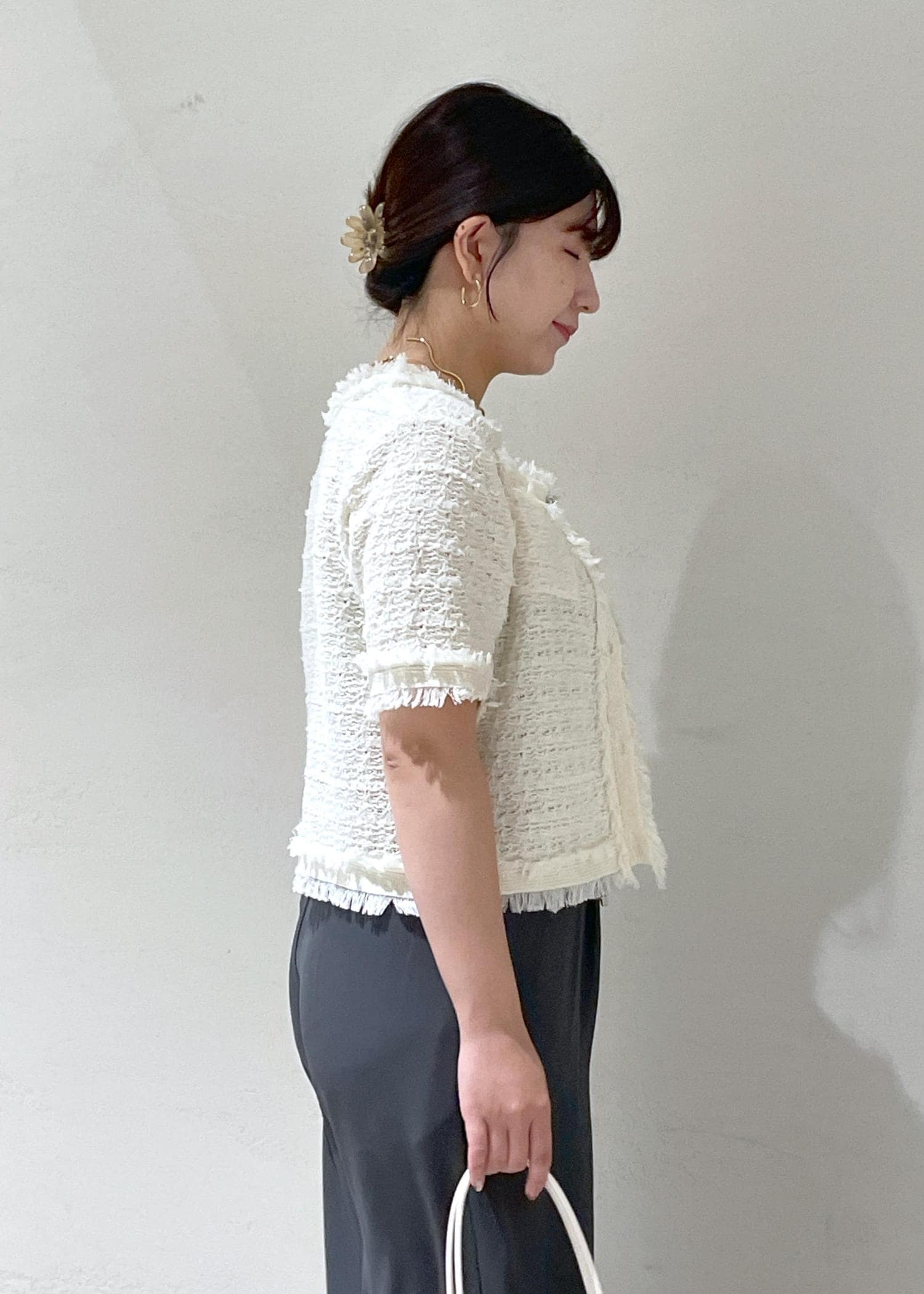 日常使いしやすいツイードカーデなので、カジュアルにデニムスタイルもおすすめ◎