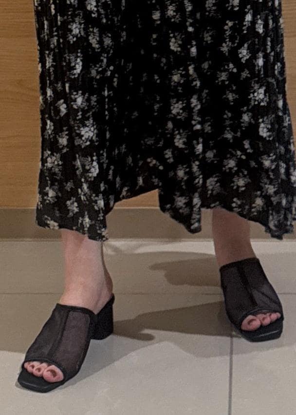ブロックヒールでスタイルアップが叶い、安定して歩きやすいです。