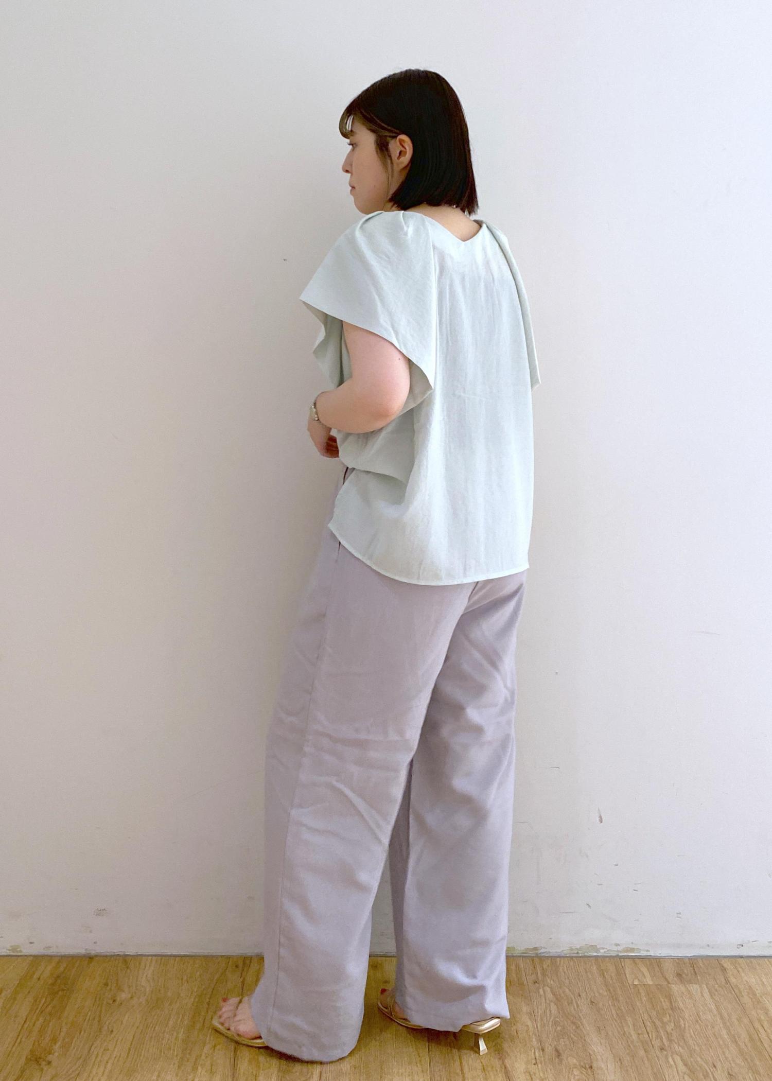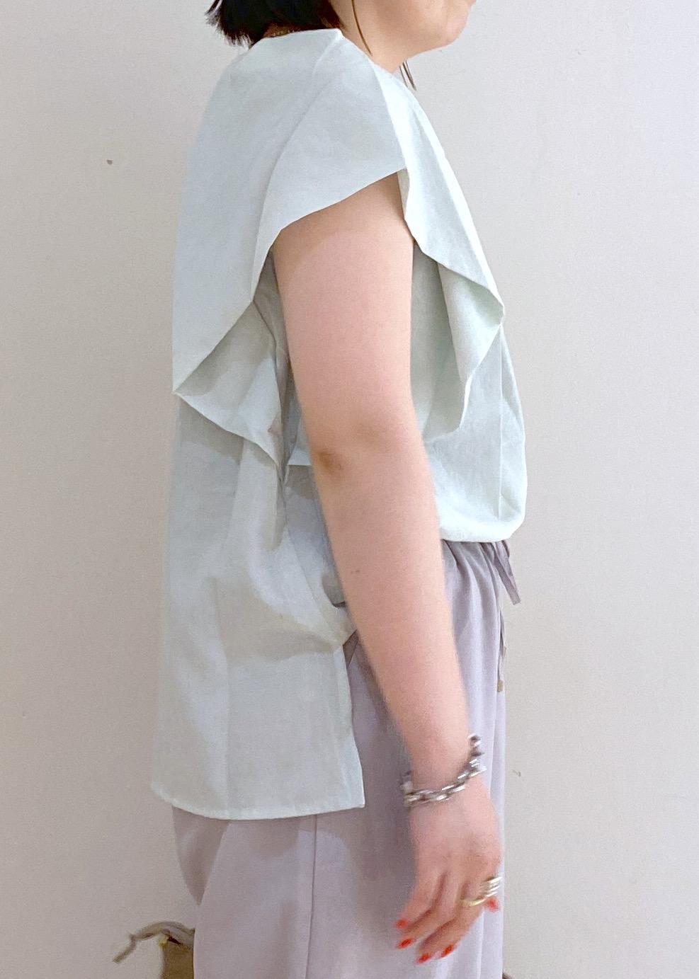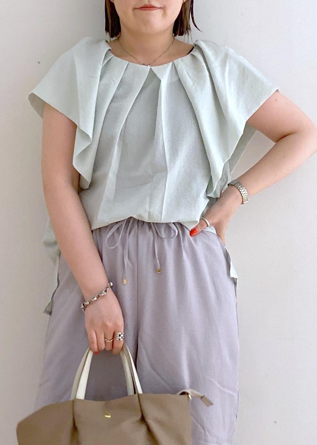 アウトレットROPÉ PICNICラッフルスリーブブラウス/通勤対応ライトグリーン / 38¥3,149レビューゆとりのあるデザインでボディラインをひろわないシルエットです☺︎二の腕もある程度隠れるので着痩せ効果◎やや前後差があり156cmでヒップが隠れる着丈です。
