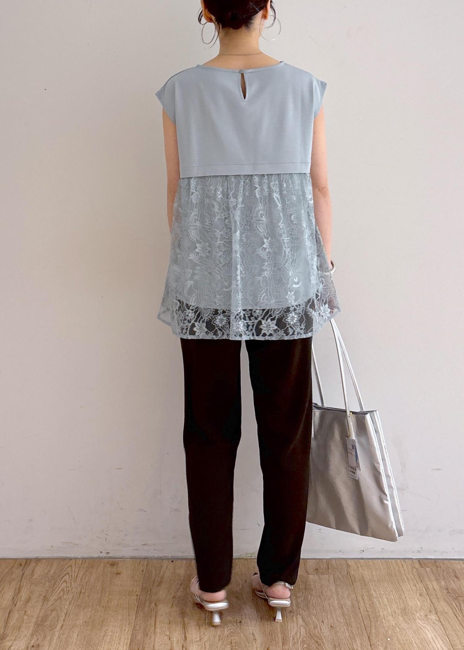 ROPÉ PICNIC【UVカット・接触冷感】レースドッキングカットトップスライトグリーン / 38¥4,499レビューさらりと一枚で映えるトップスです。バスト部分はすっきりしていますが裾にかけて広がり華やかな印象に。レースがカジュアル過ぎないのでおでかけにも◎