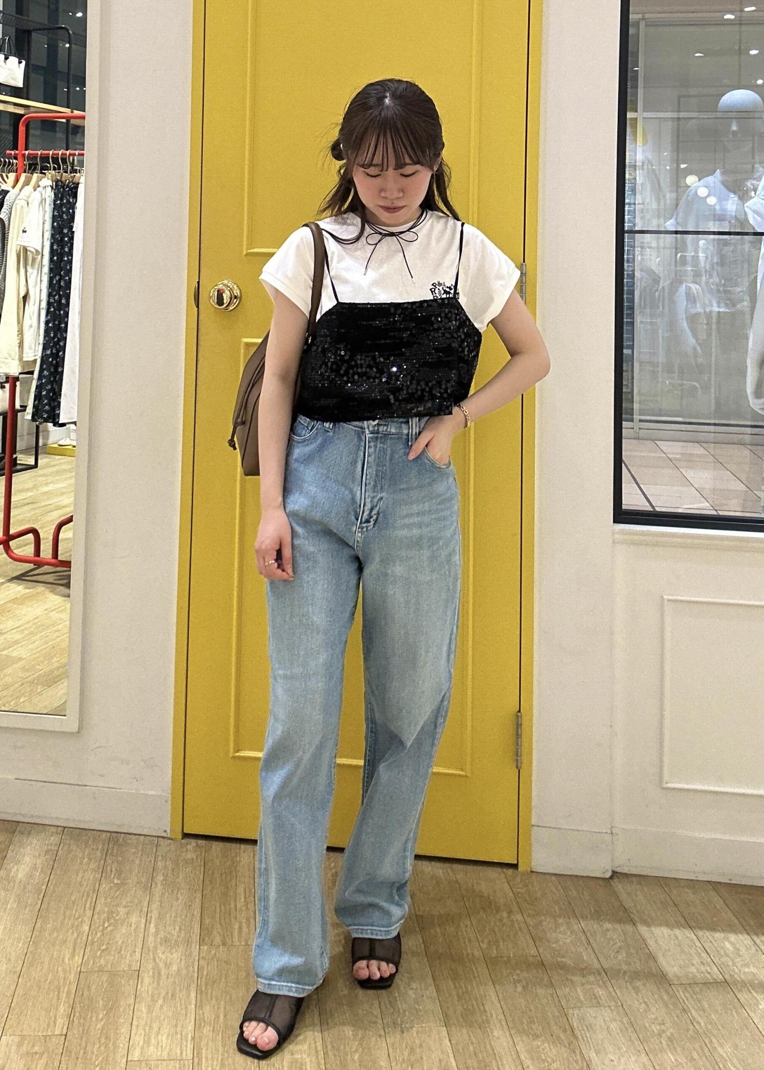 キラキラと輝くスパンコールがシンプルになりがちな夏のコーデを華やかに演出♩