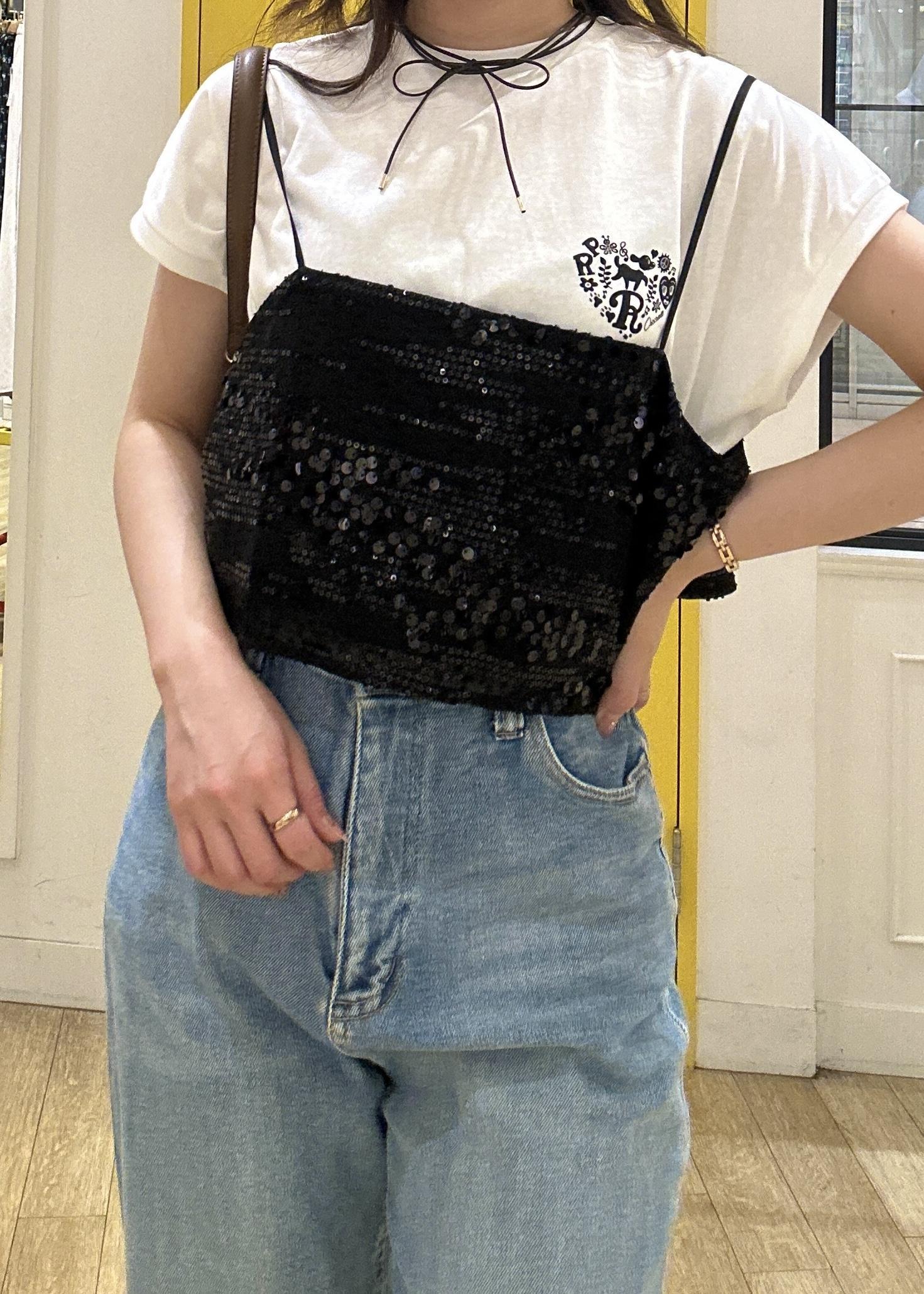 アウトレットROPÉ PICNICスパンコールビスチェ付きカットトップスブラック / 38¥2,497レビューTシャツとビスチェのセットアイテム。