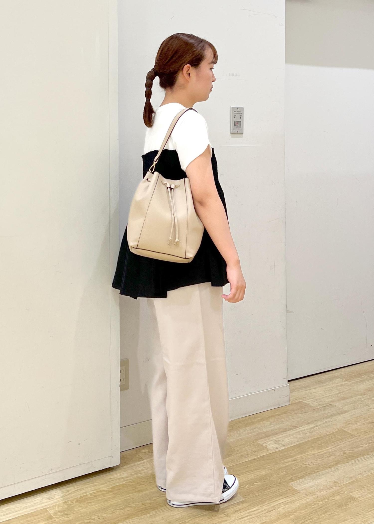 バッグとパンツ、トップスと靴の色味を合わせ統一感を意識したコーディネートです☆