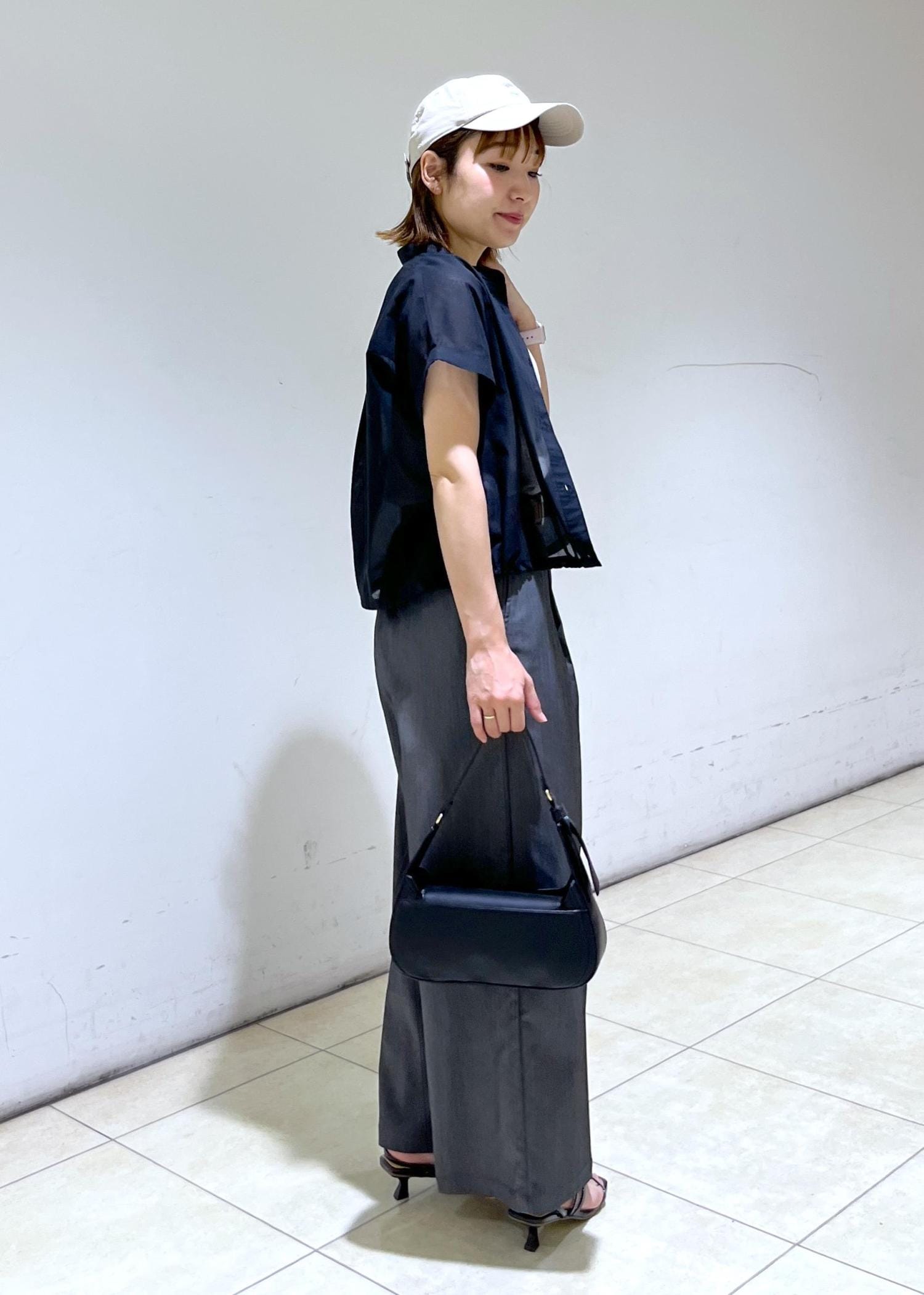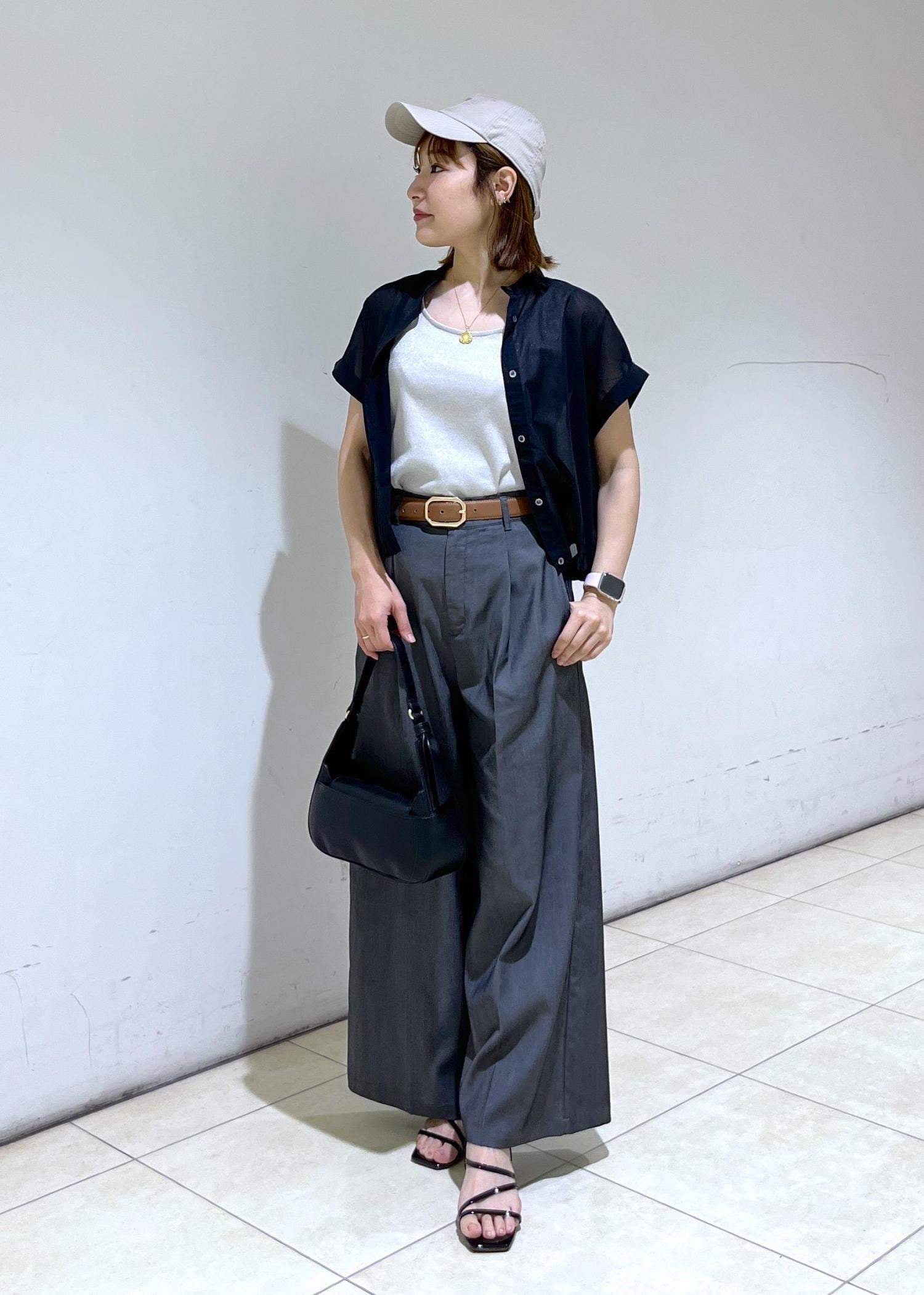 黒のシャツにグレーのパンツで合わせたカジュアルコーデ♪