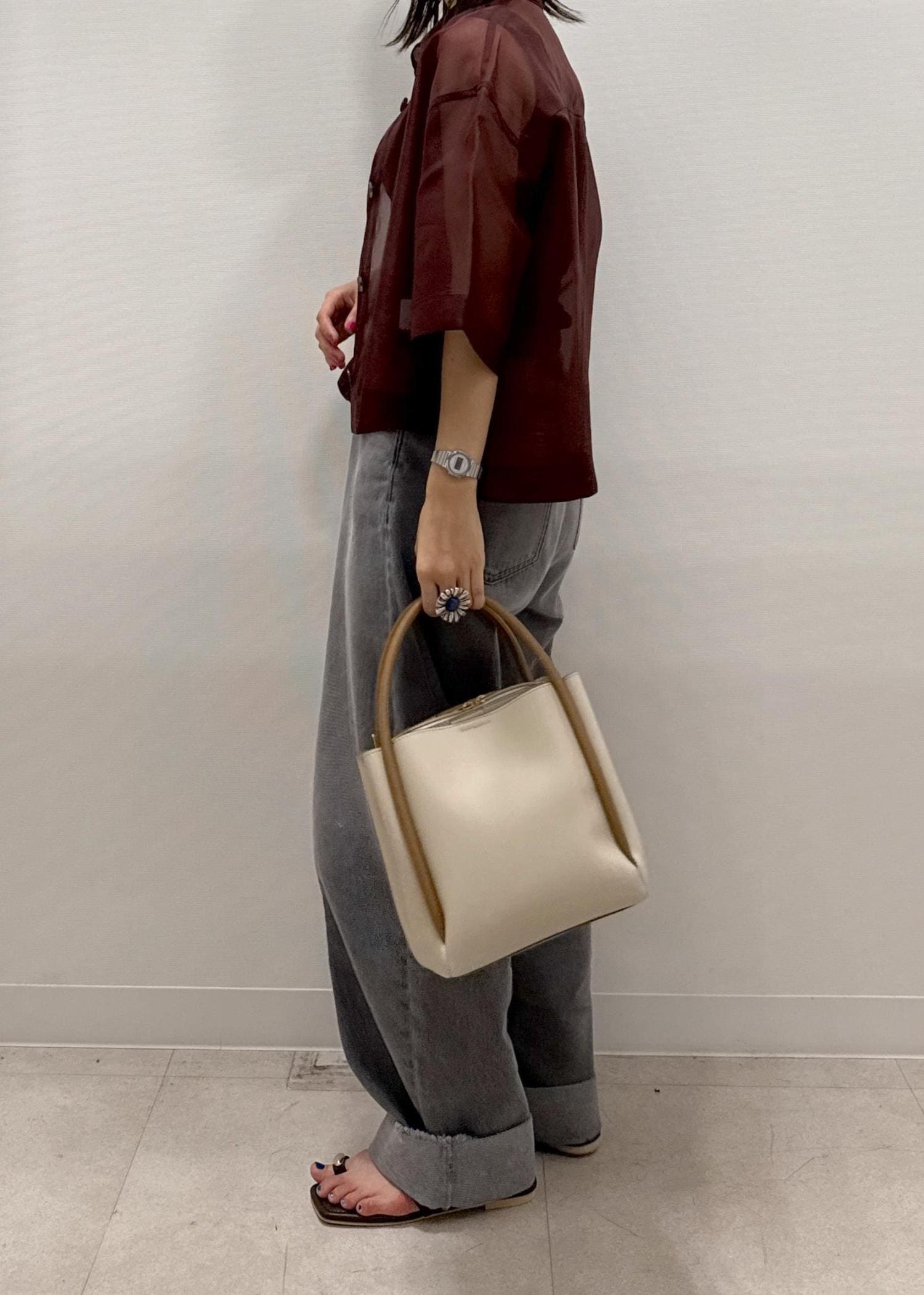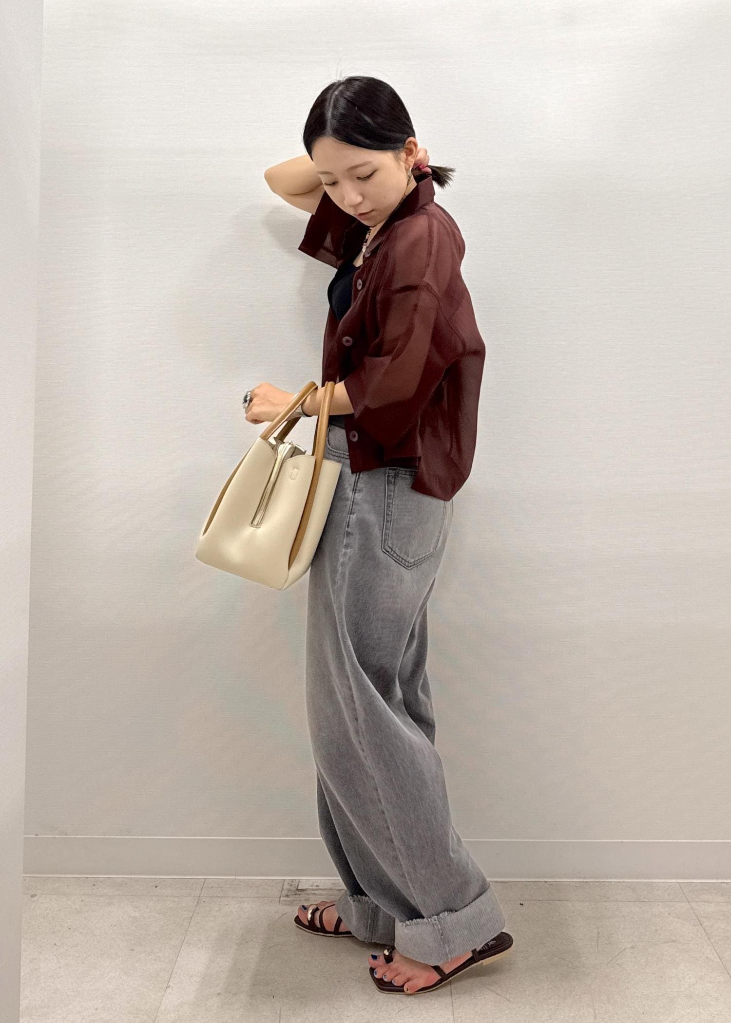 シアー感のあるシャツでレディライクに☺︎