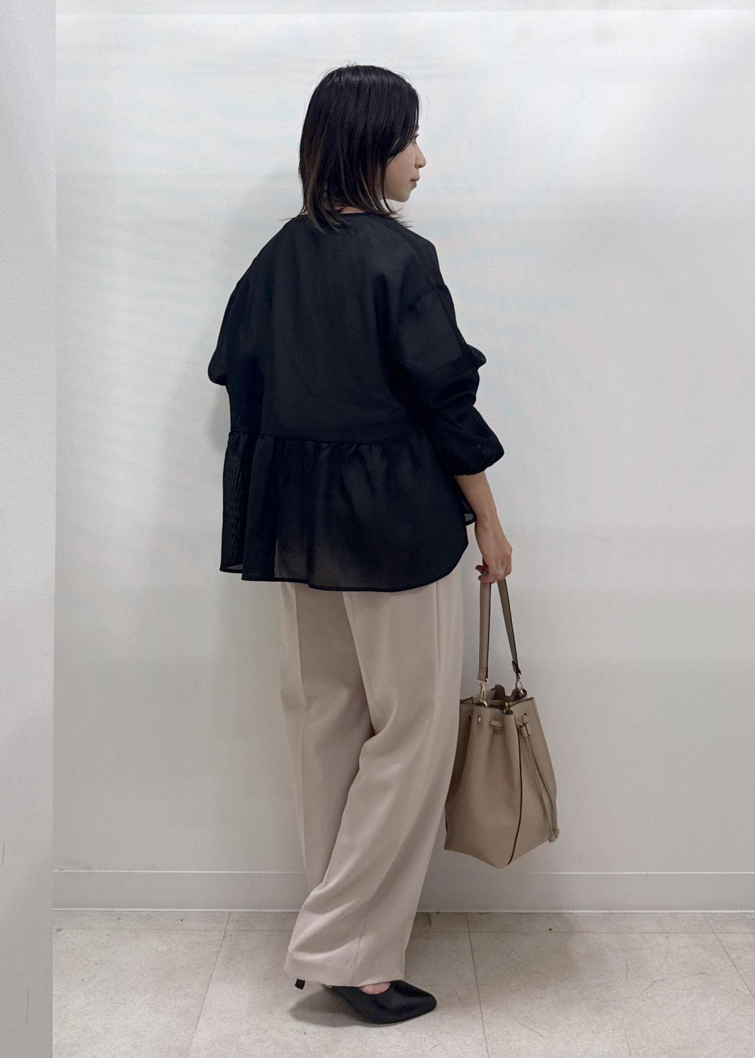 フラットシューズと合わせても床に裾がつかなそうです。 -