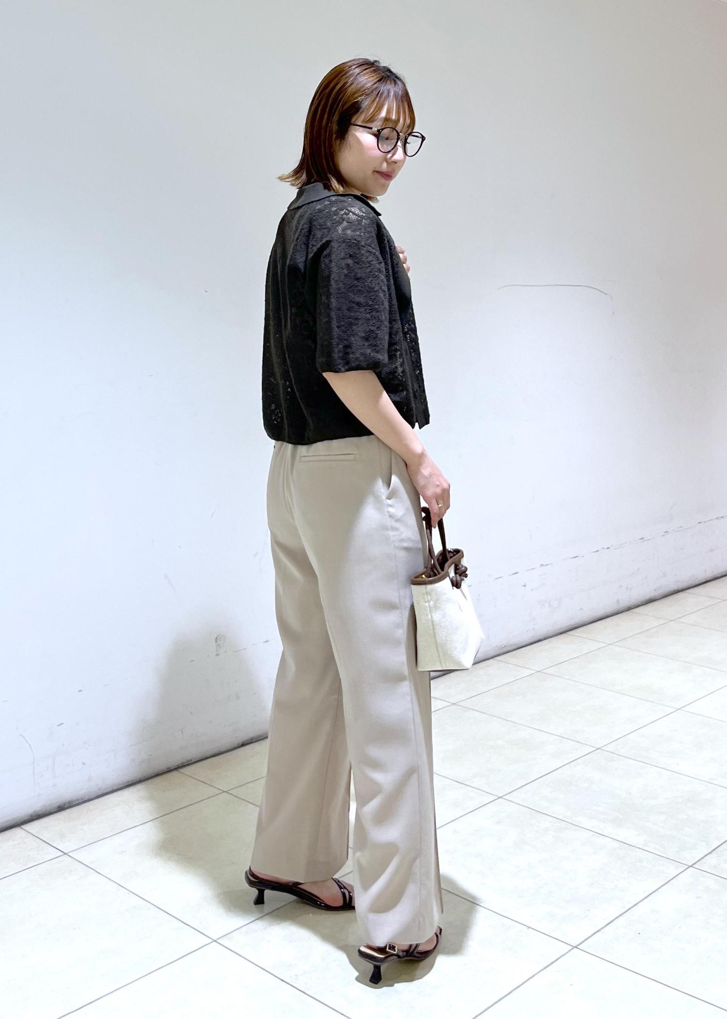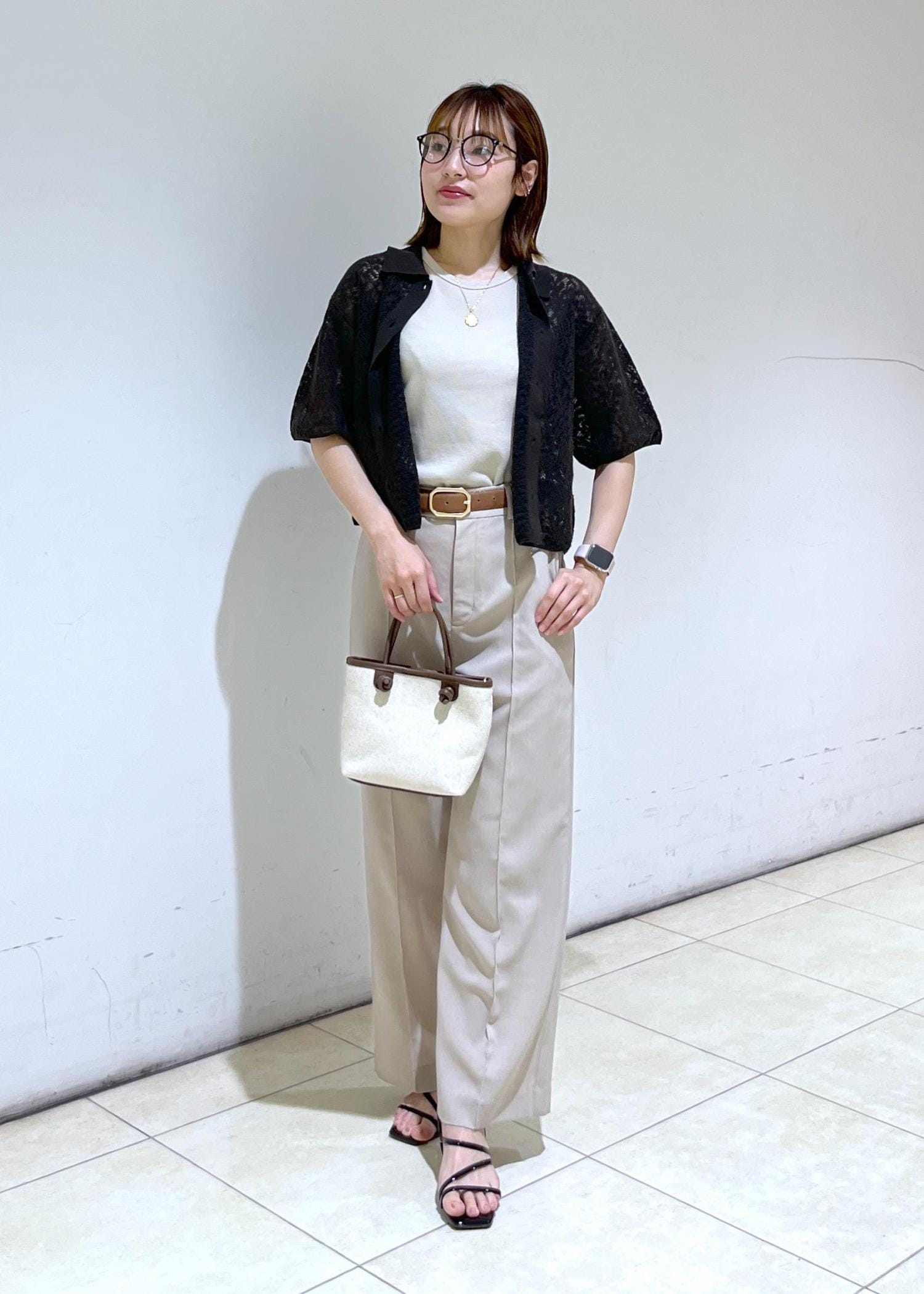 夏らしいレースカーディガンにベージュのパンツで合わせた大人カジュアルコーデ♪