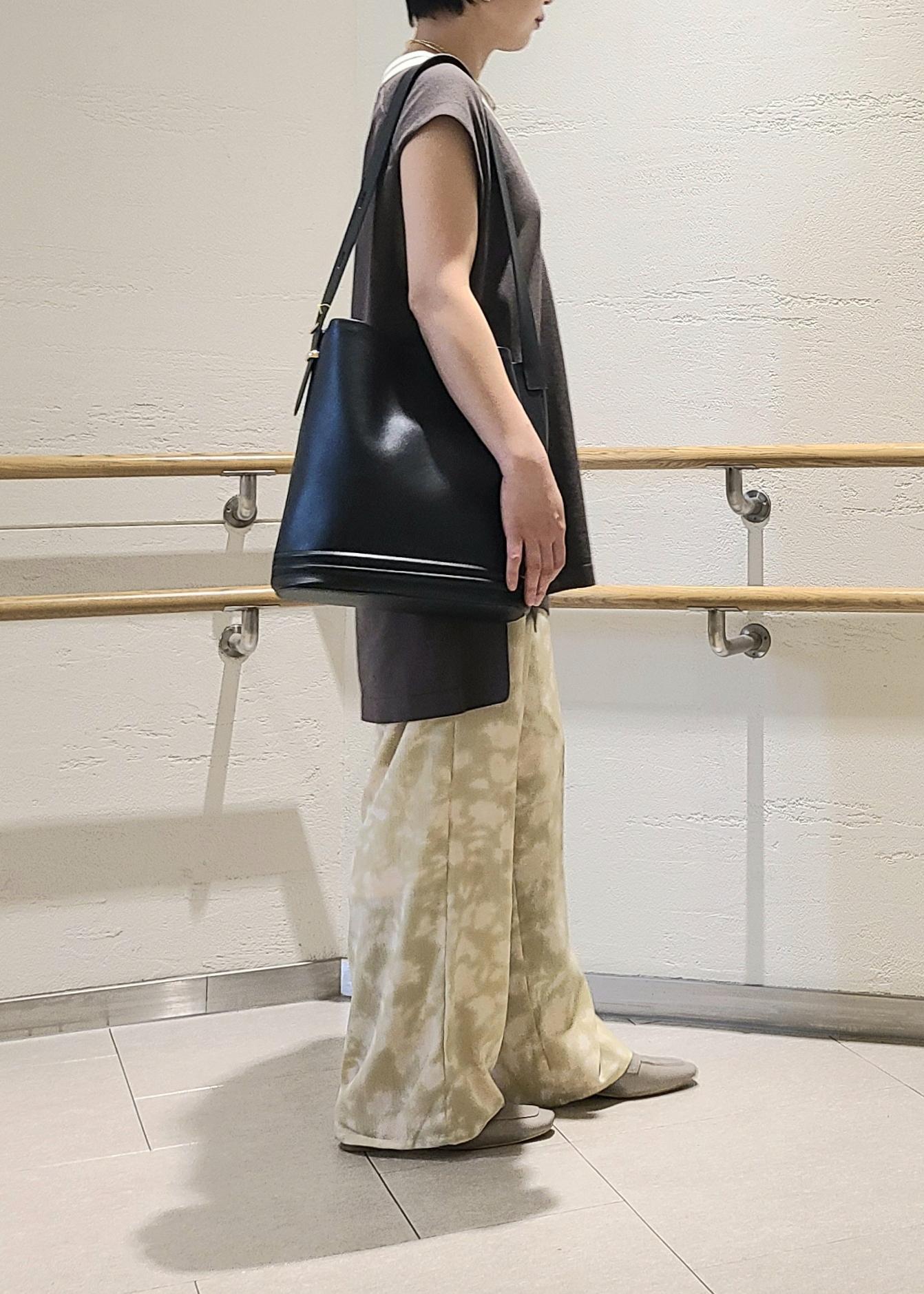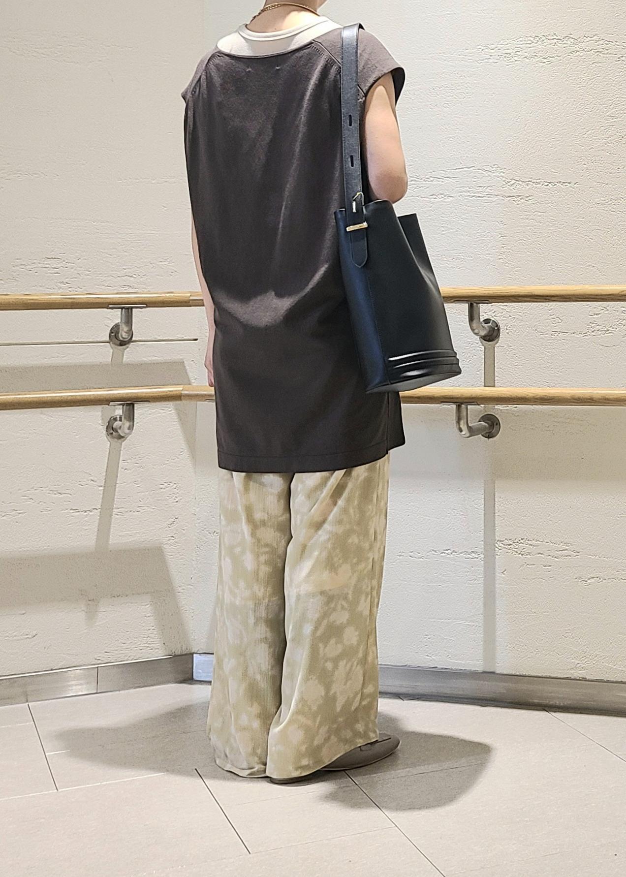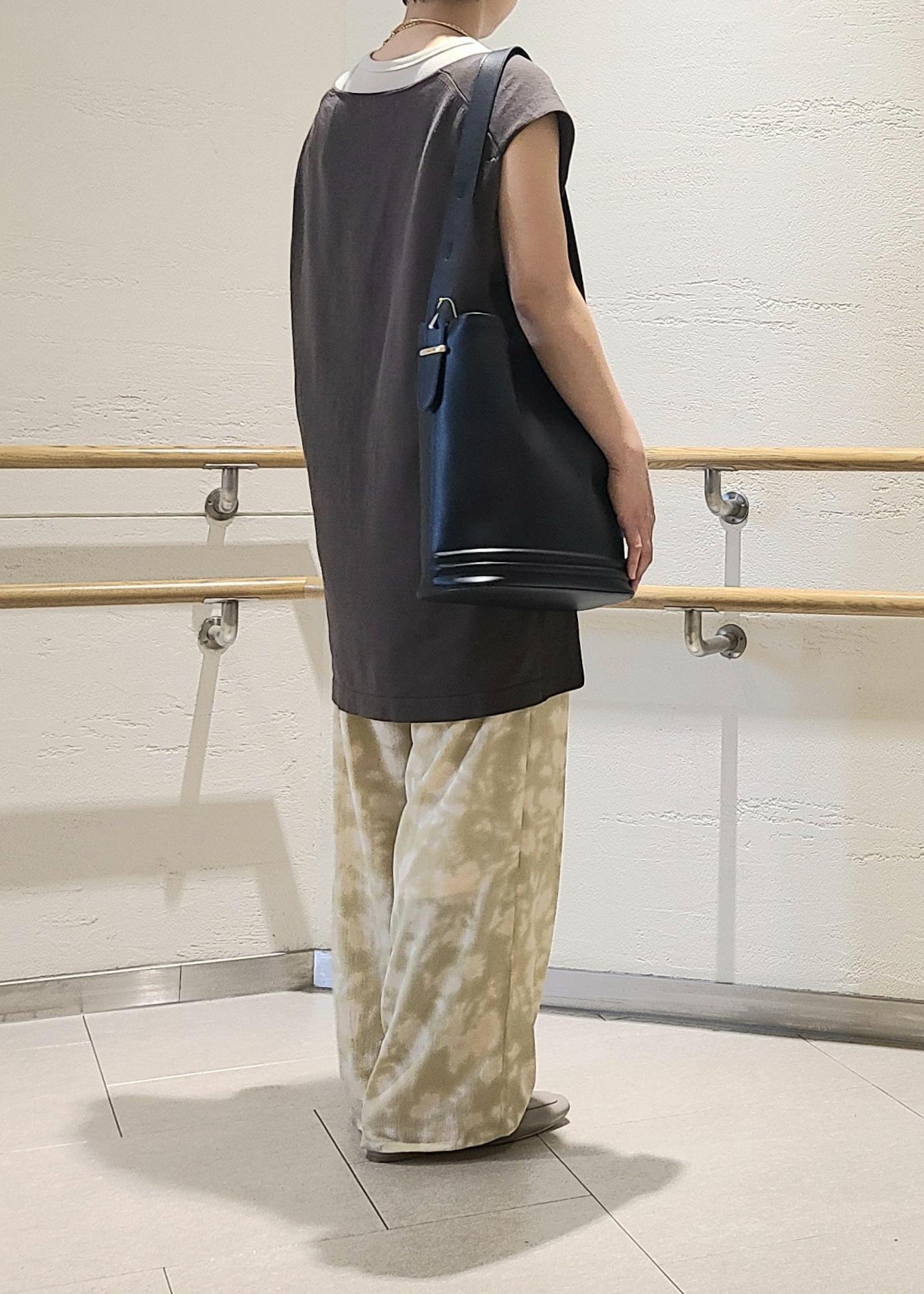 暑い季節におすすめなリラックス感のある雰囲気でまとめつつ、バッグでメリハリを付けました。