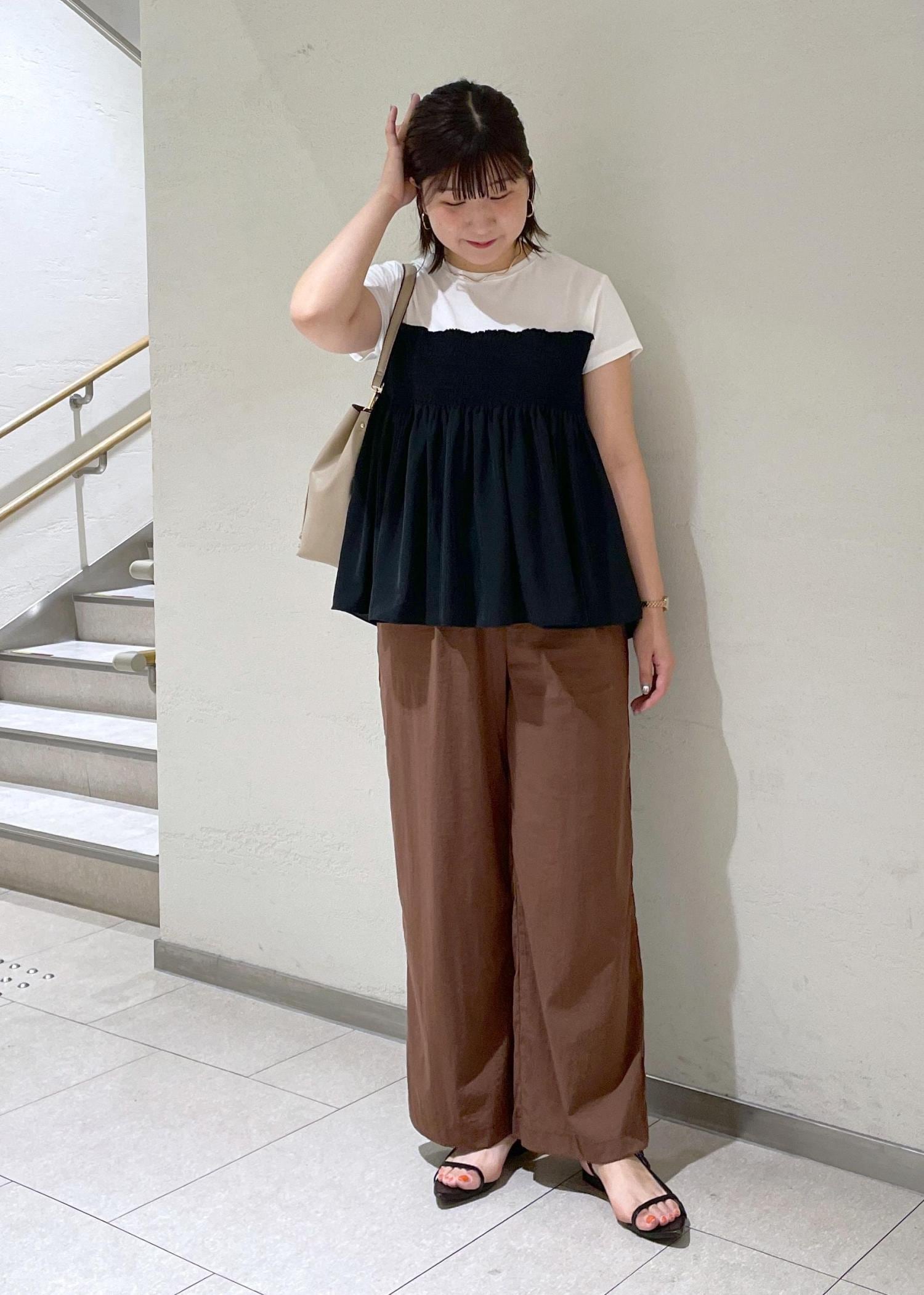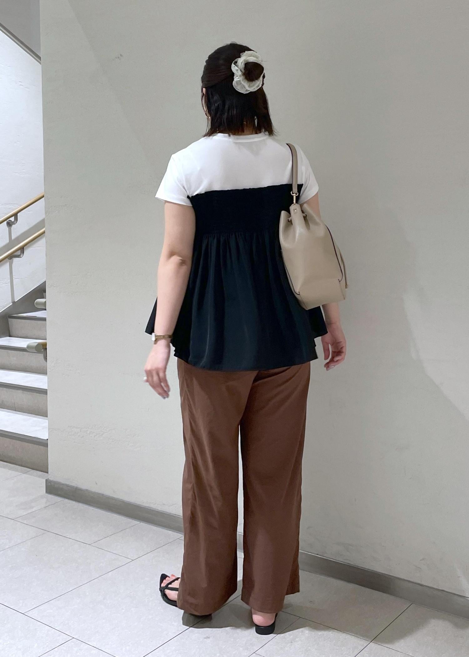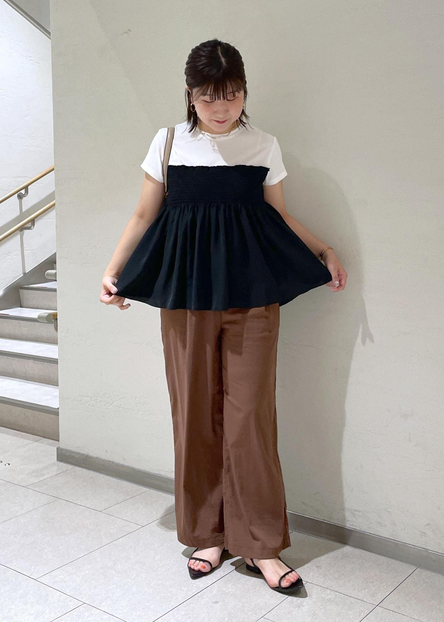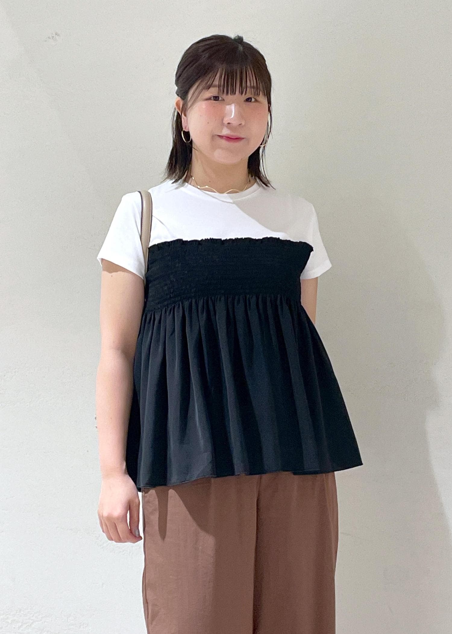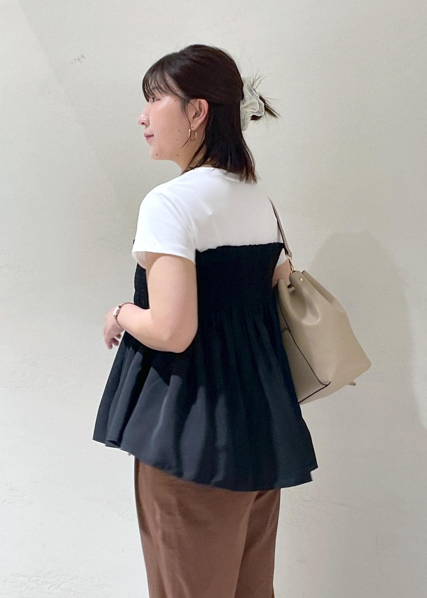 シャーリング部分は上だけTシャツと縫い付けされているので、胸が強調されることもなく可愛く着ていただけます✨️