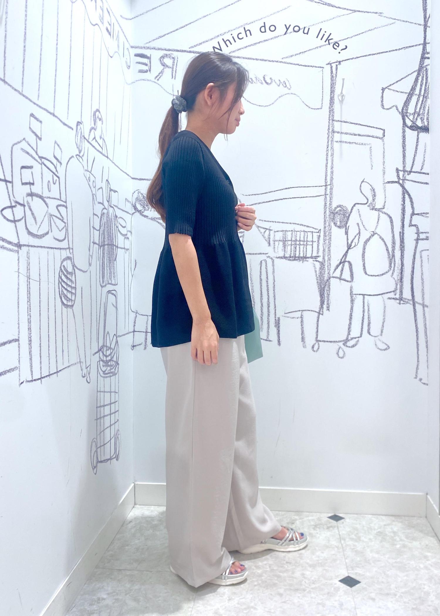また、トップスのペプラムシルエットとパンツのゆったりしたシルエットが体型カバーもしてくれます。