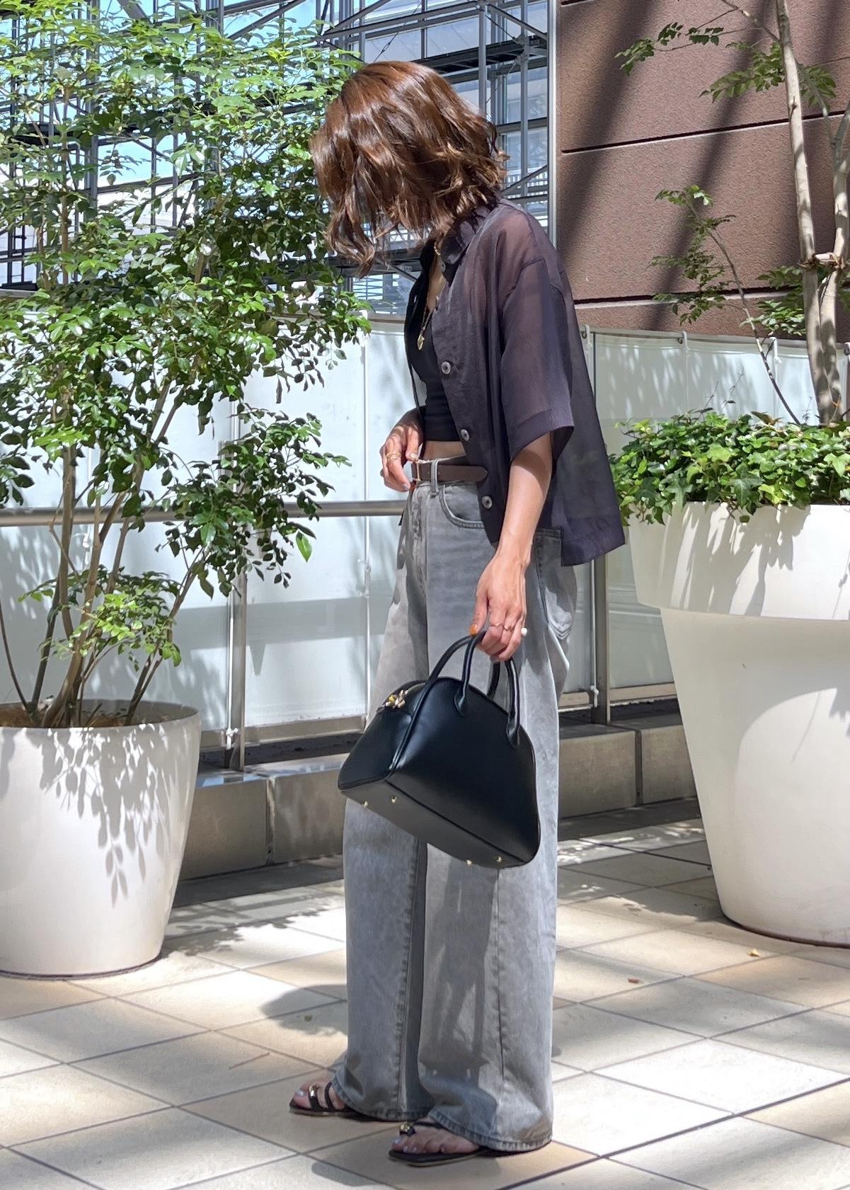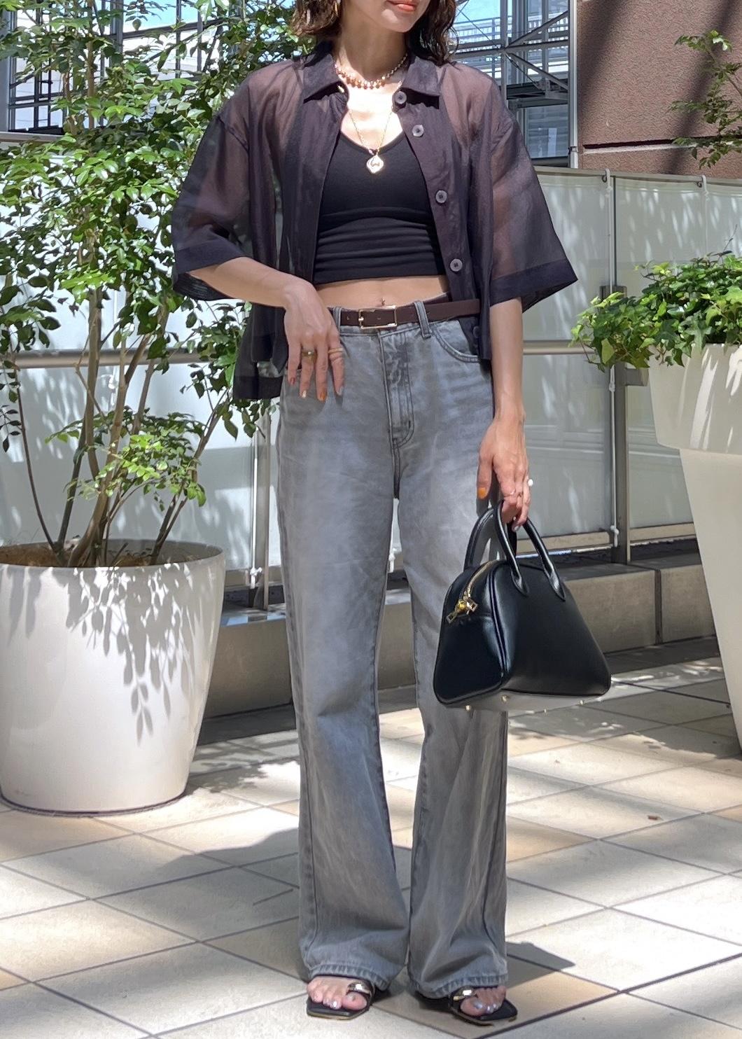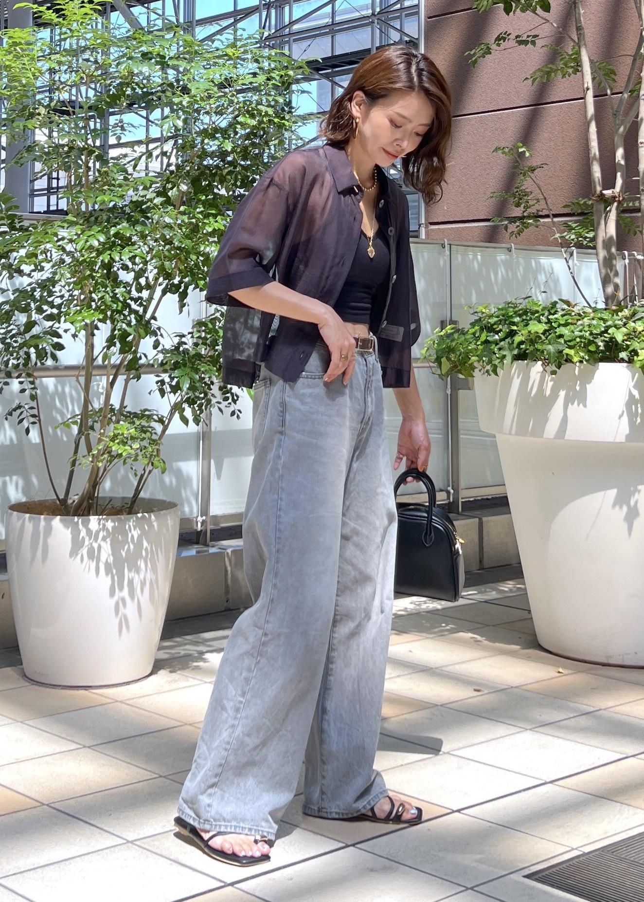軽く羽織りやすいシアーシャツは、夏のヘルシーコーデにもおすすめ。