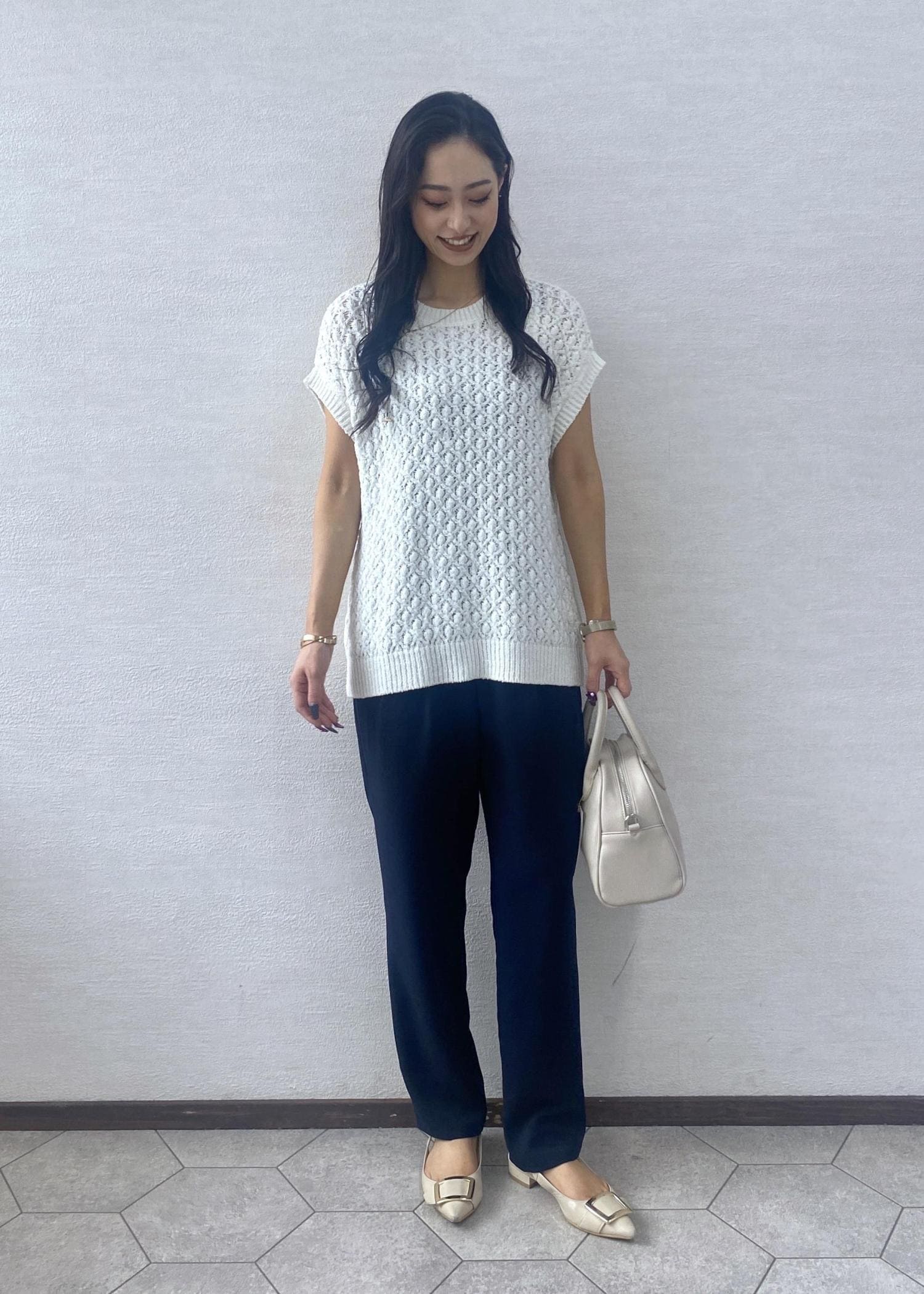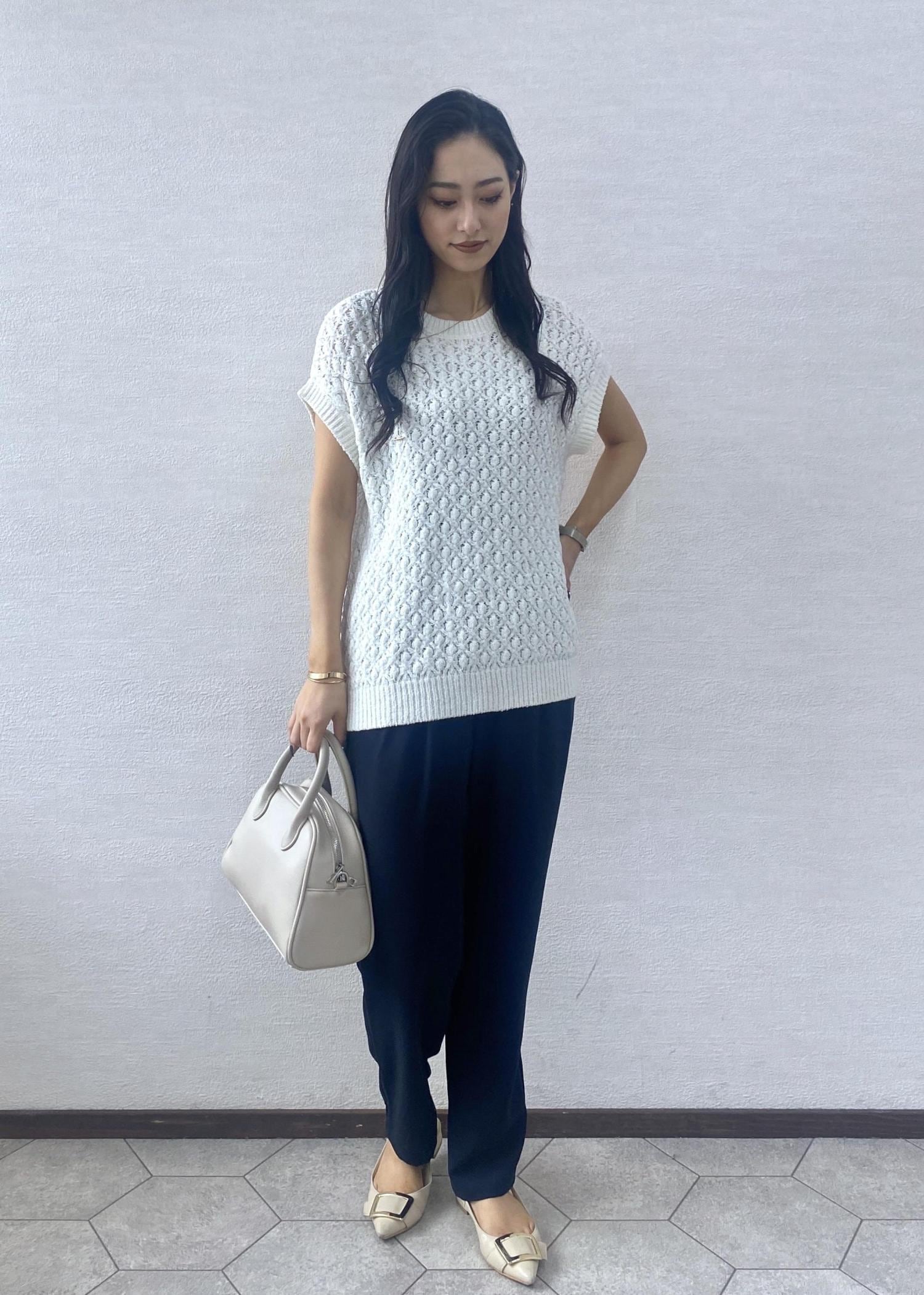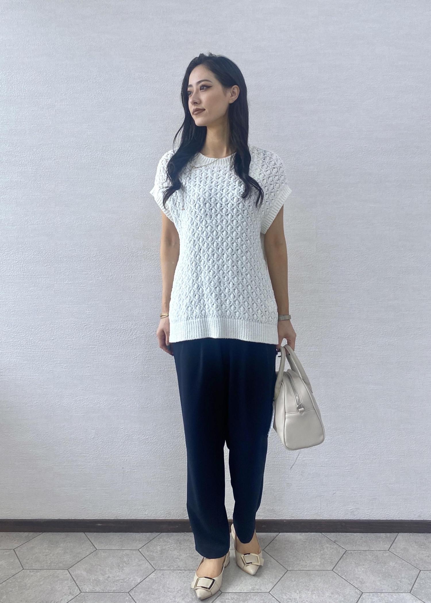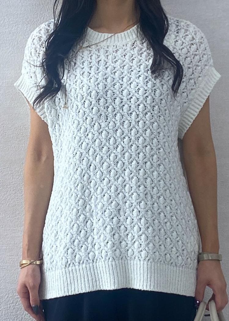 アウトレットROPÉ PICNICポップコーン編みニットベストホワイト / 38¥2,497レビュー柔らかい素材感で程よい透け感があります。