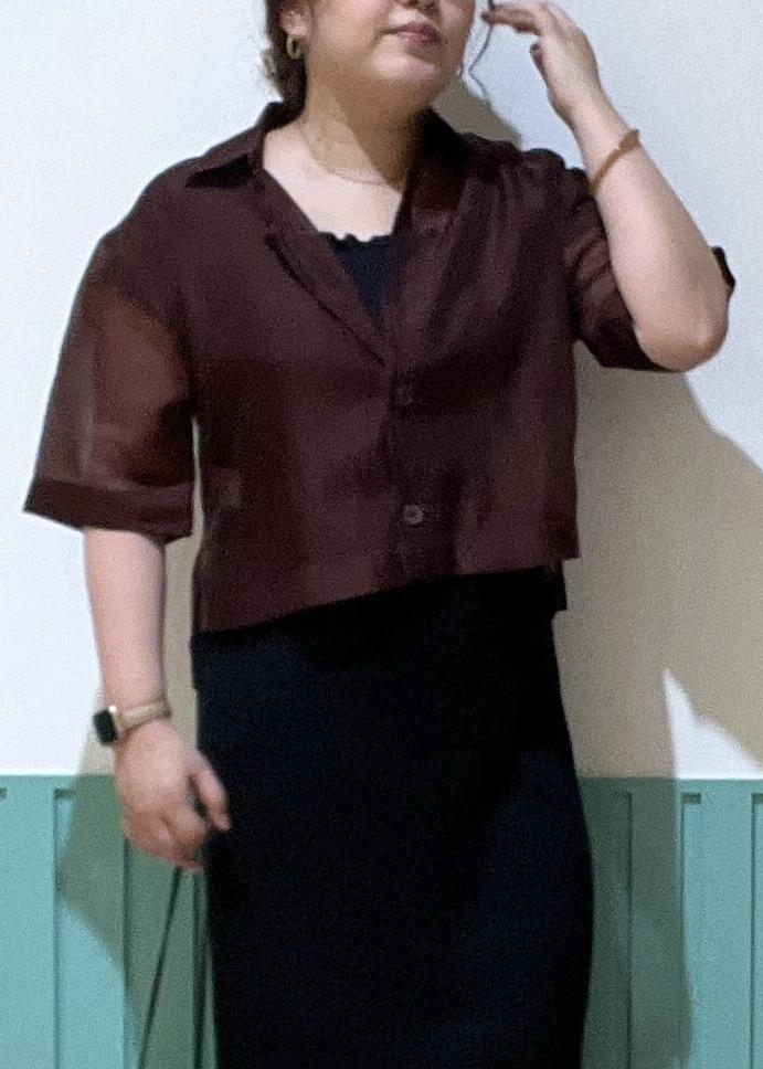 ROPÉ PICNIC【接触冷感】ハーフスリーブシアーシャツブラウン系 /¥5,489レビュー羽織にもレイヤードスタイルにも着回し力◎