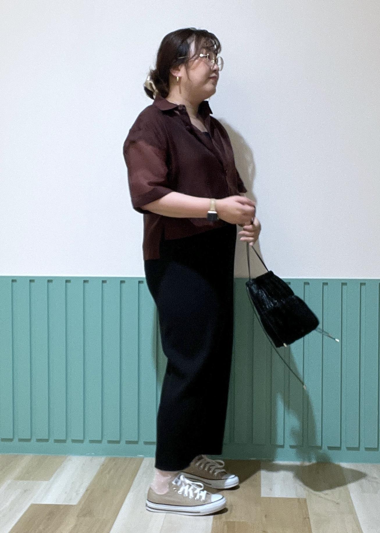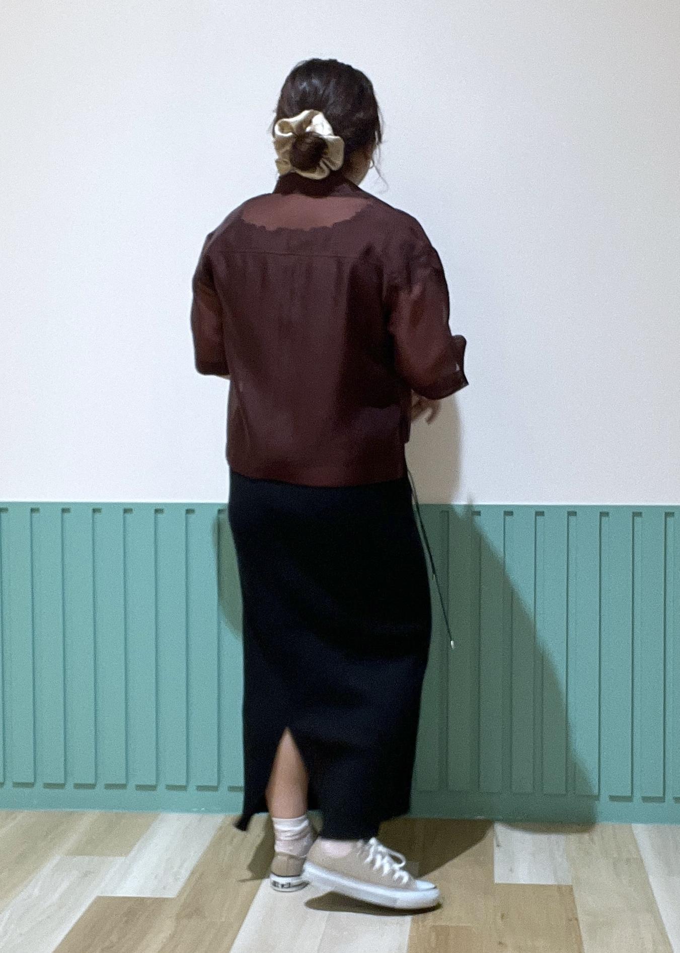 綺麗めな印象にしつつ、スニーカーで合わせ