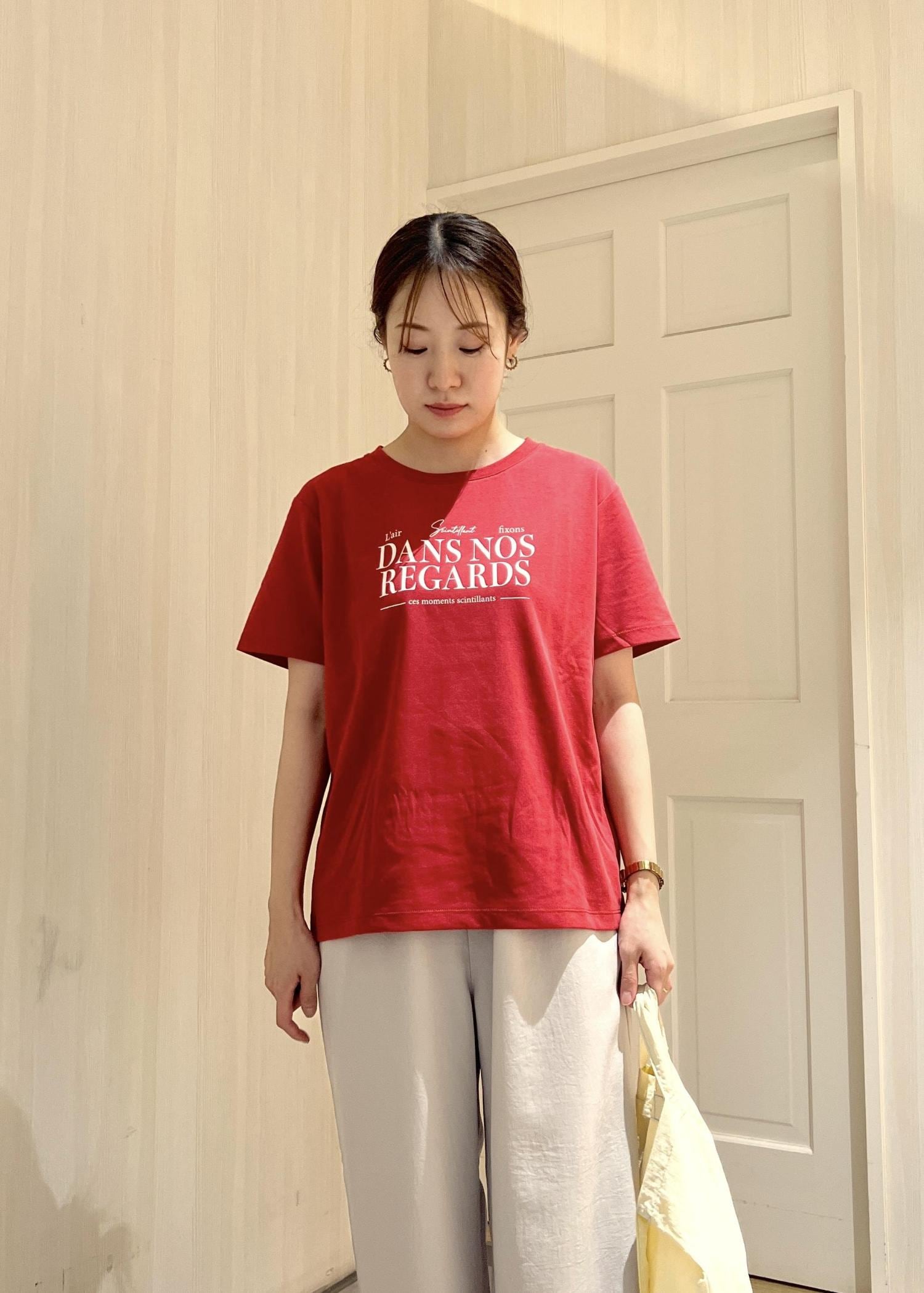 ROPÉ PICNIC【UVカット・接触冷感・汗染み加工】フレンチロゴプリントTシャツレッド / 38¥2,798レビューオーバーすぎないシルエットでした。袖は二の腕が半分隠れるくらい、丈は腰くらいまでです。