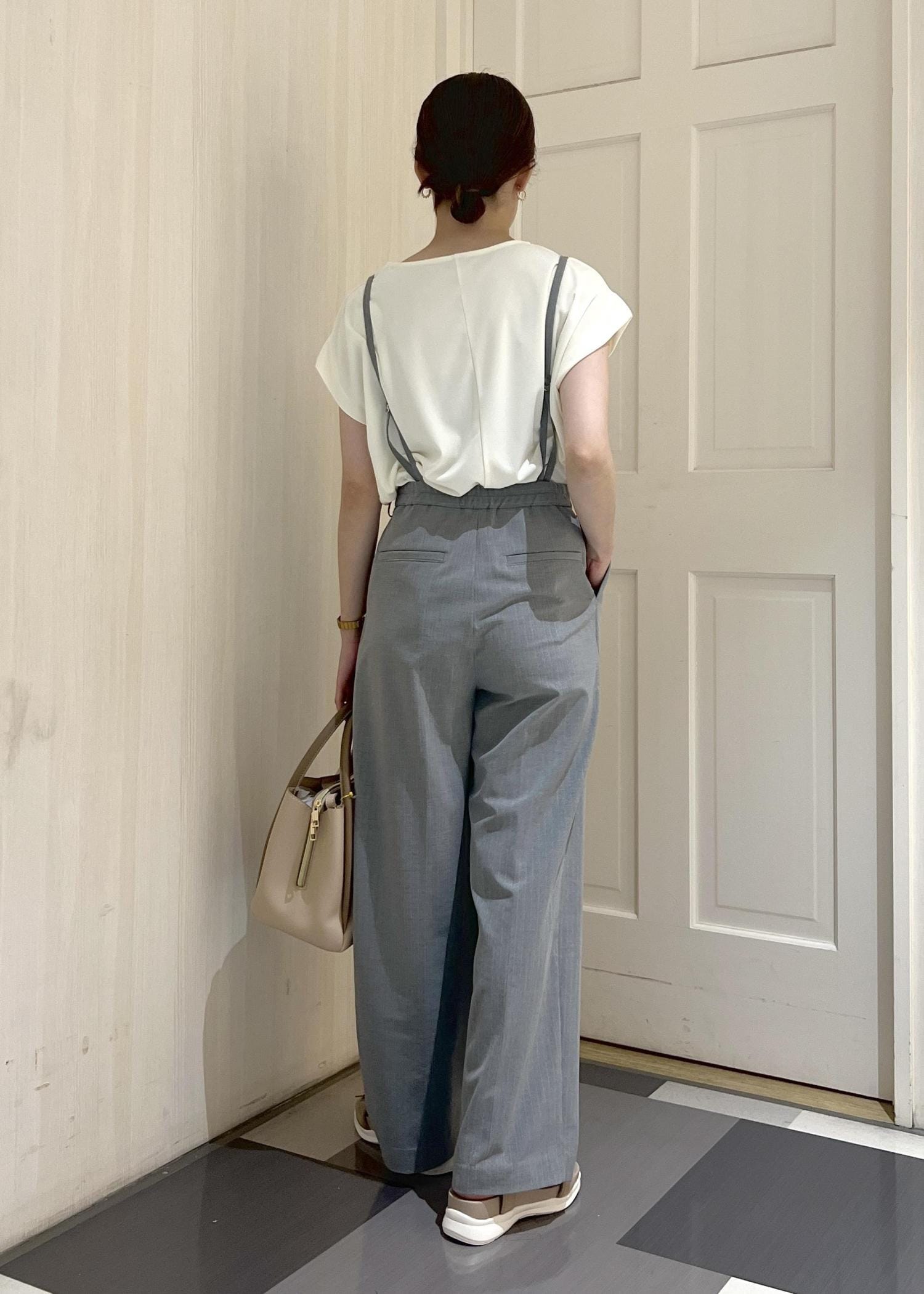 きれいめにも着られるトップスをサスペンダー付きパンツと合わせました!