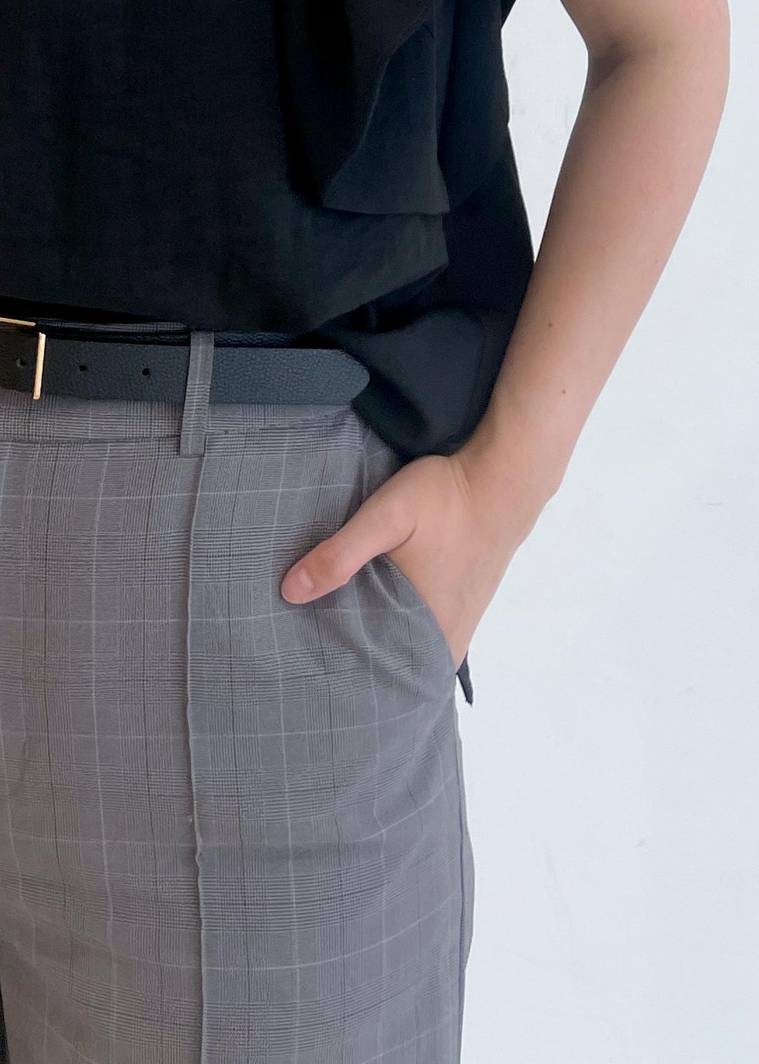 パンツだけチェックのグレーにして、他は全て黒で統一しました!